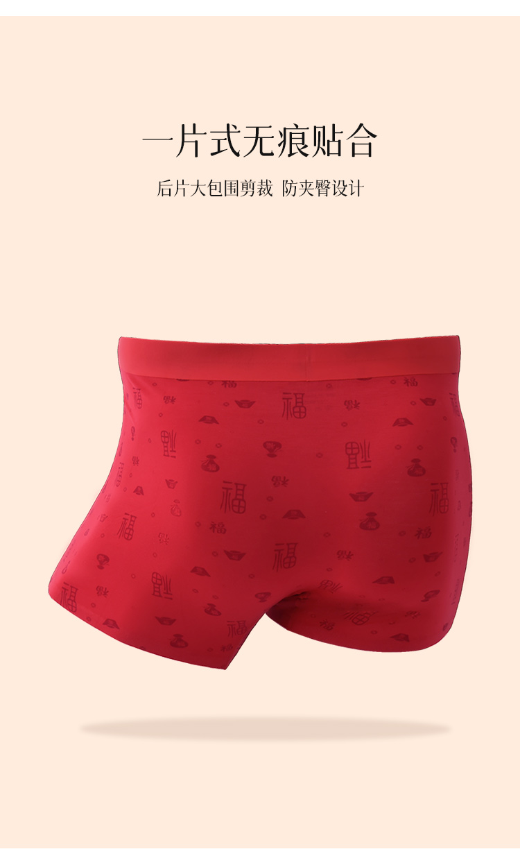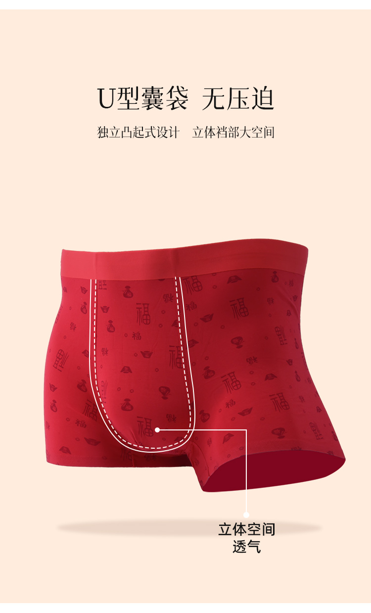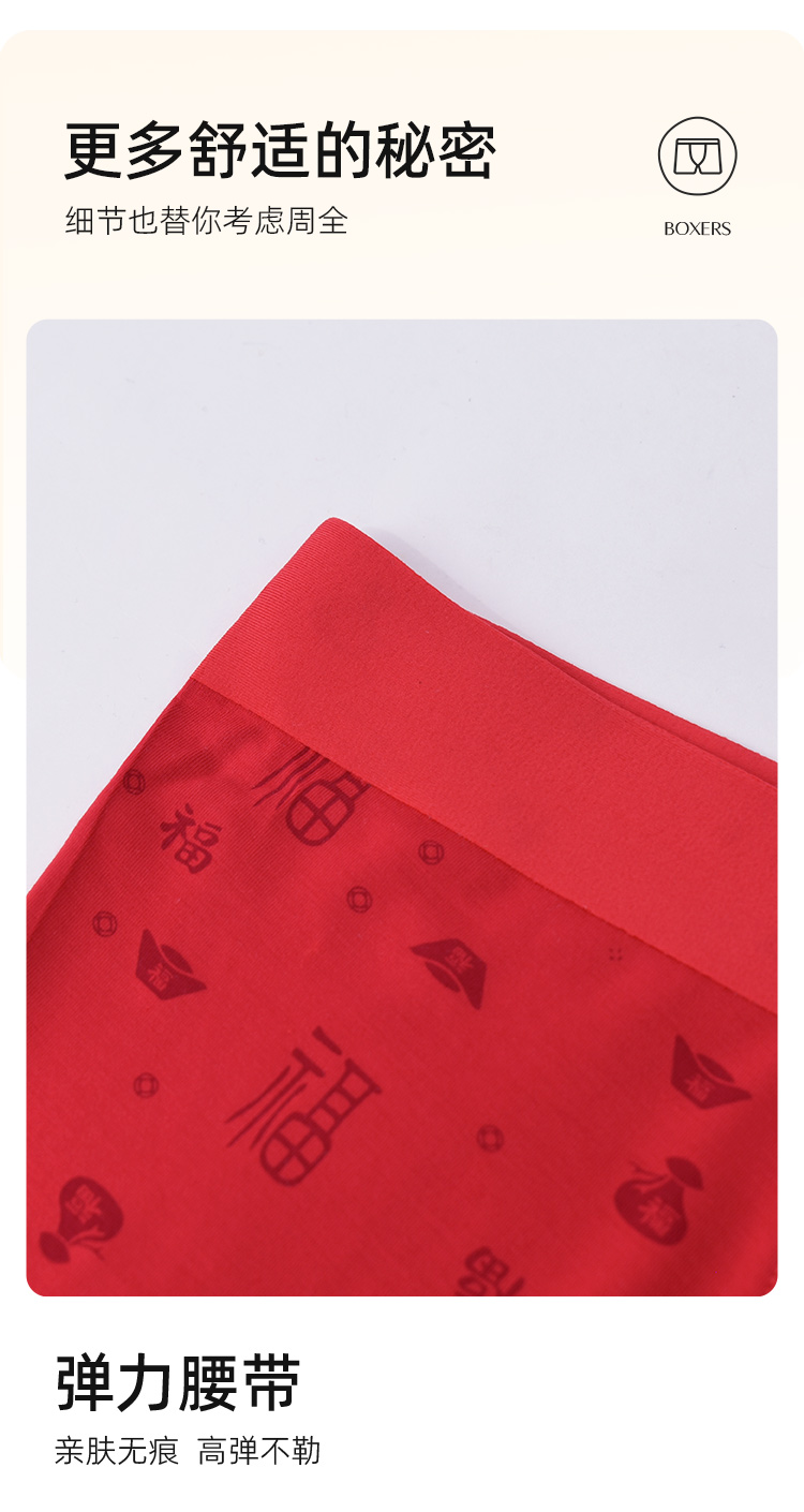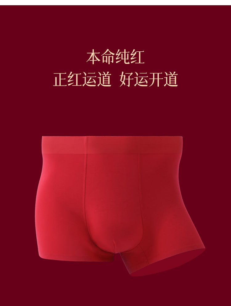 【99元2条,数量拍1】优待源选鸿运男士盒裤2条装大红色透气四角短裤DKN1179