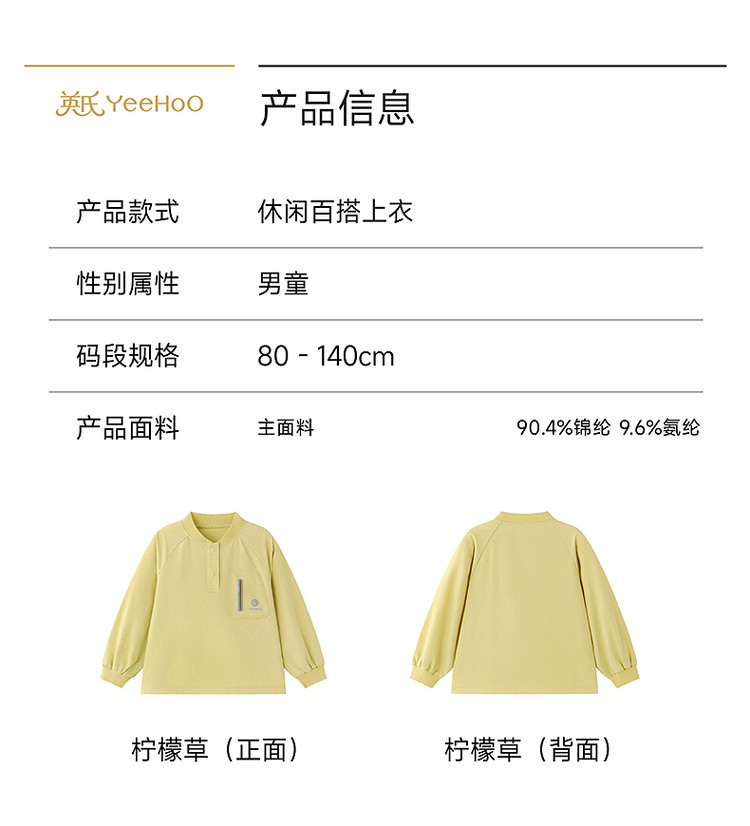 英氏儿童T恤男童长袖上衣春夏新款百搭休闲长袖T恤YRTAJ1S031A
