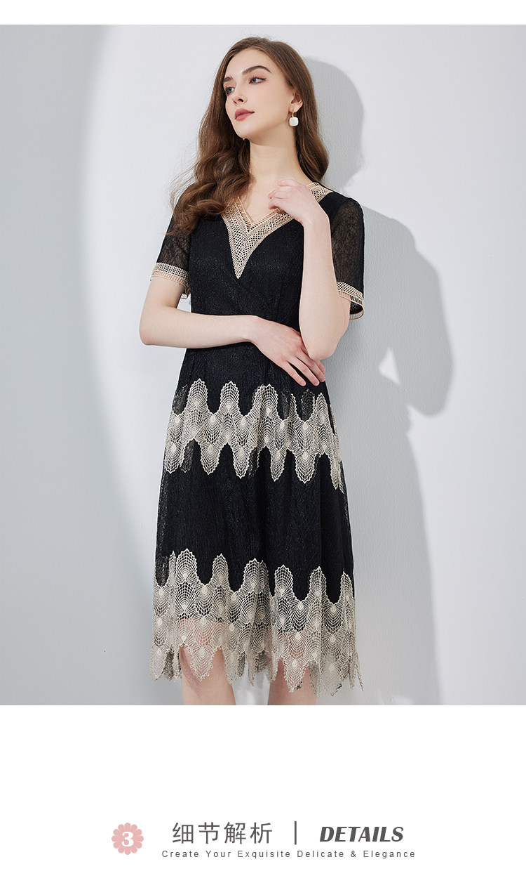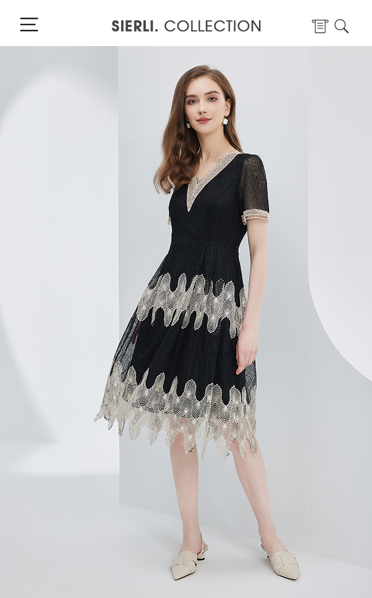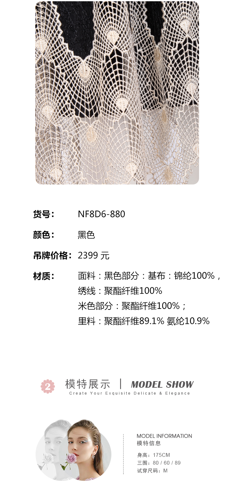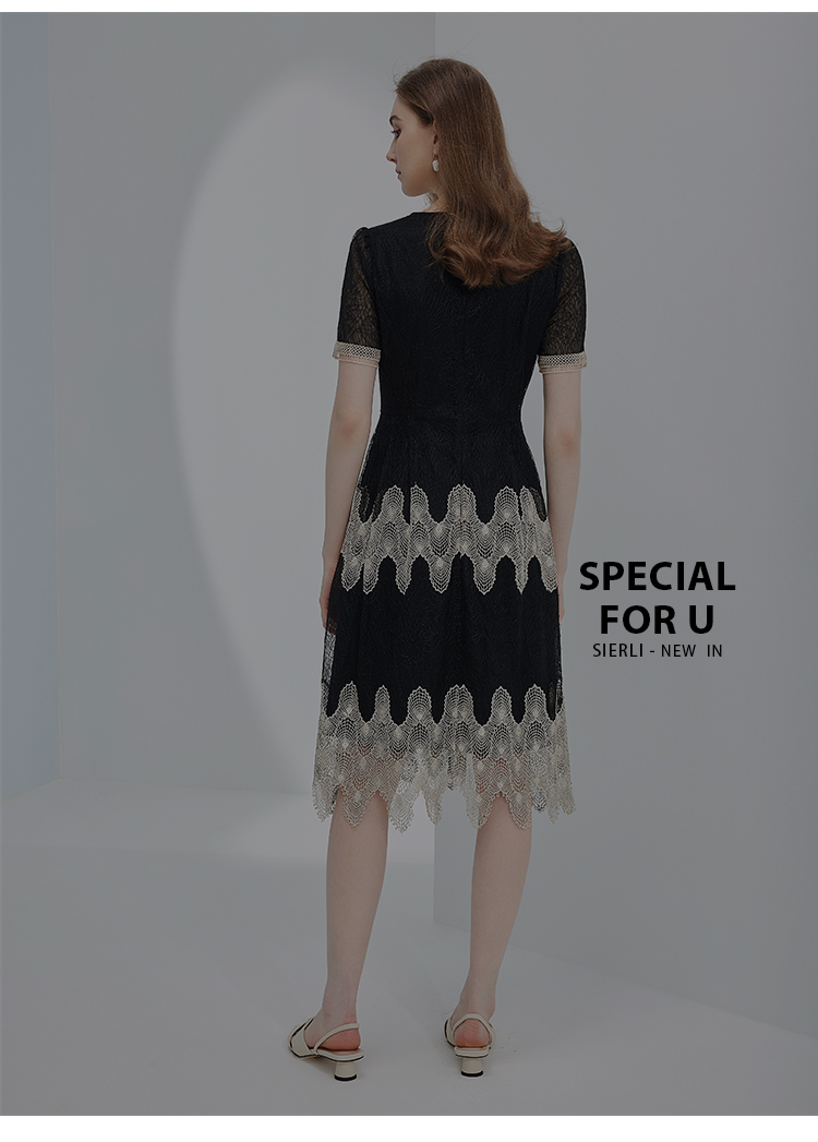 NF8D6斯尔丽瑟俪2023春夏浪漫柔美款式经典大方收腰绣花蕾丝连衣裙