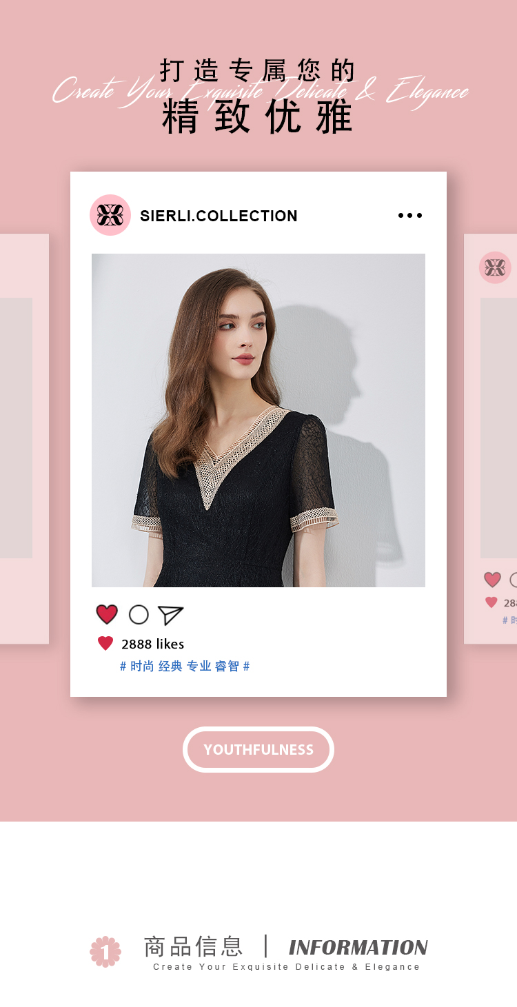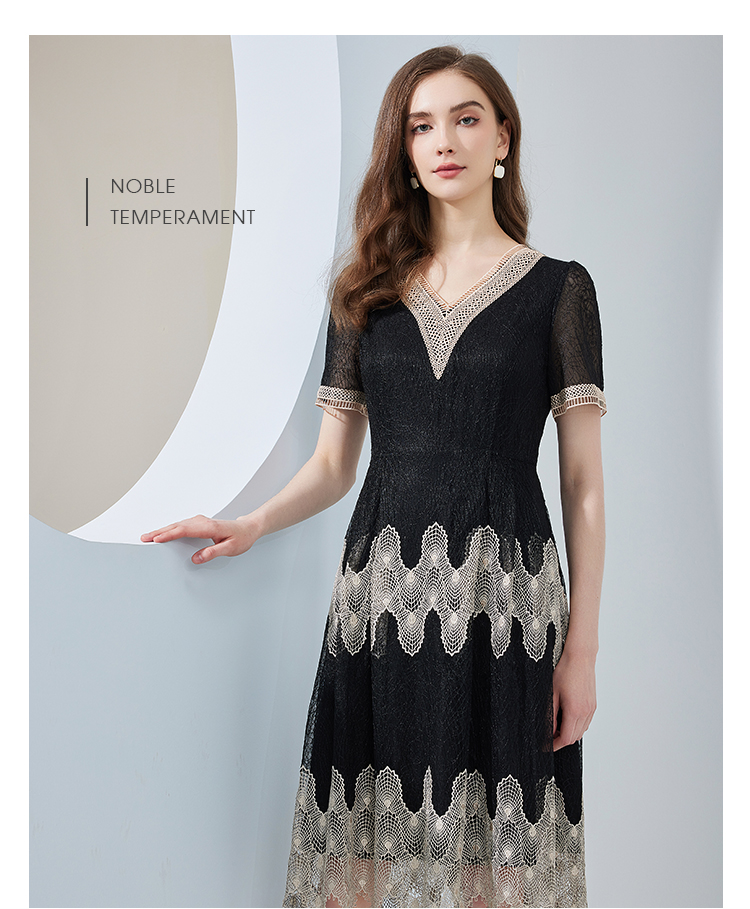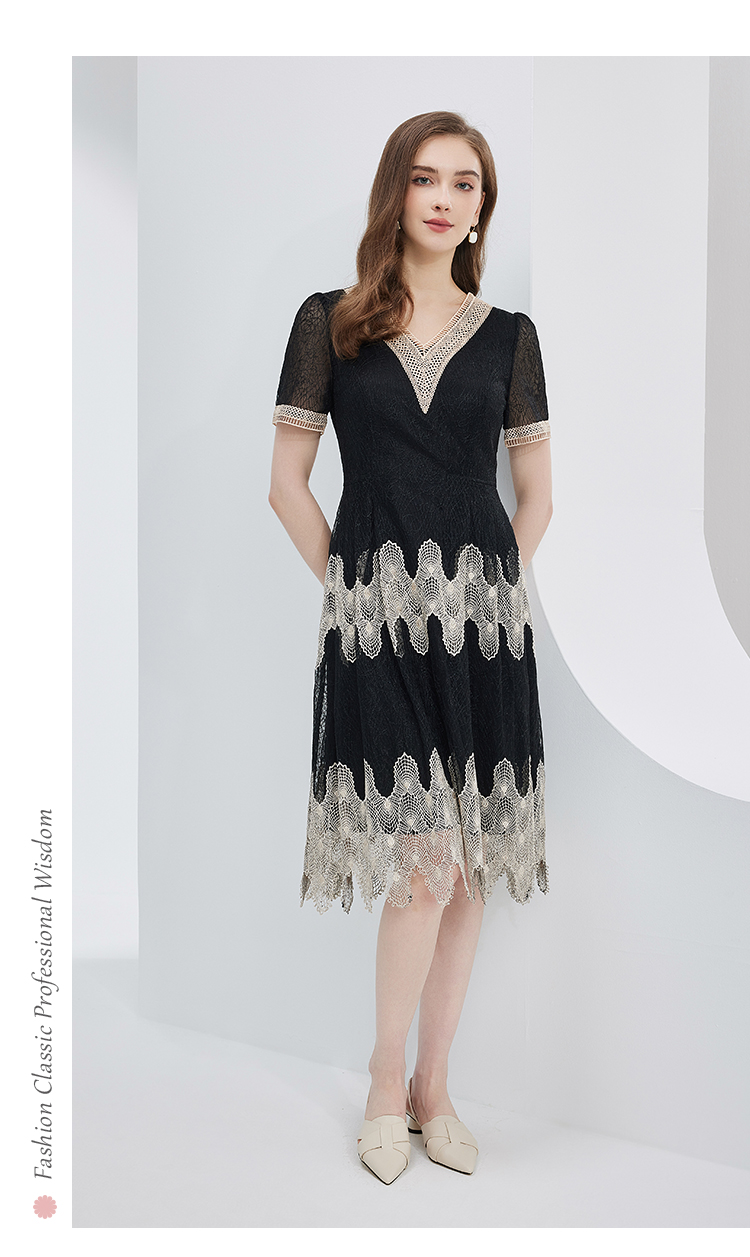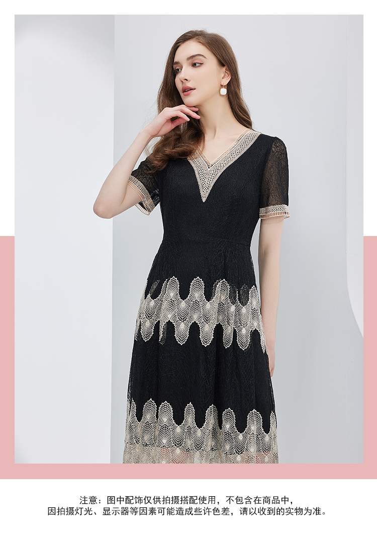 NF8D6斯尔丽瑟俪2023春夏浪漫柔美款式经典大方收腰绣花蕾丝连衣裙