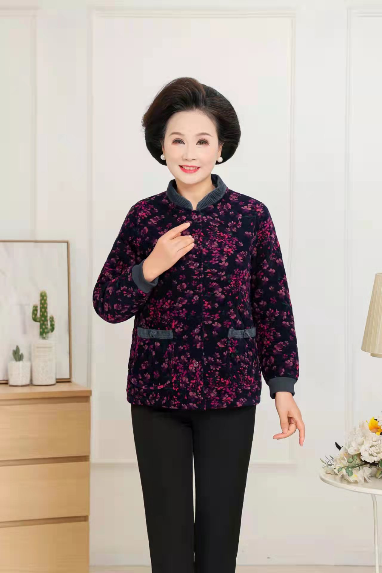 面料:纯棉,卖点,纯棉休闲,简单大方,适合55岁以上人群穿着,搭配直筒裤子或小脚裤均可,适合80-160穿着。