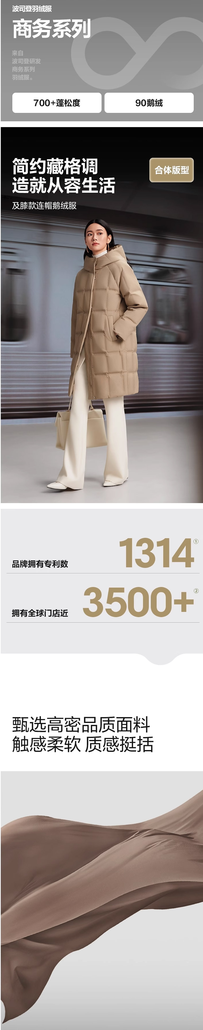 波司登2025新款羽绒服女中长款鹅绒B250244164