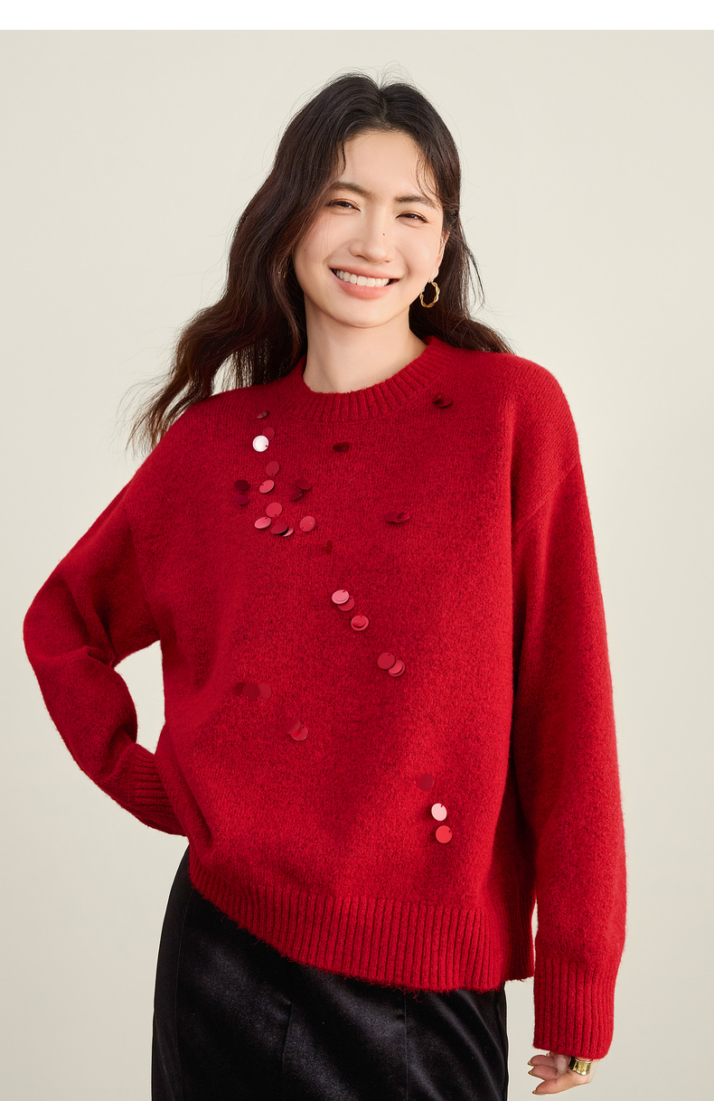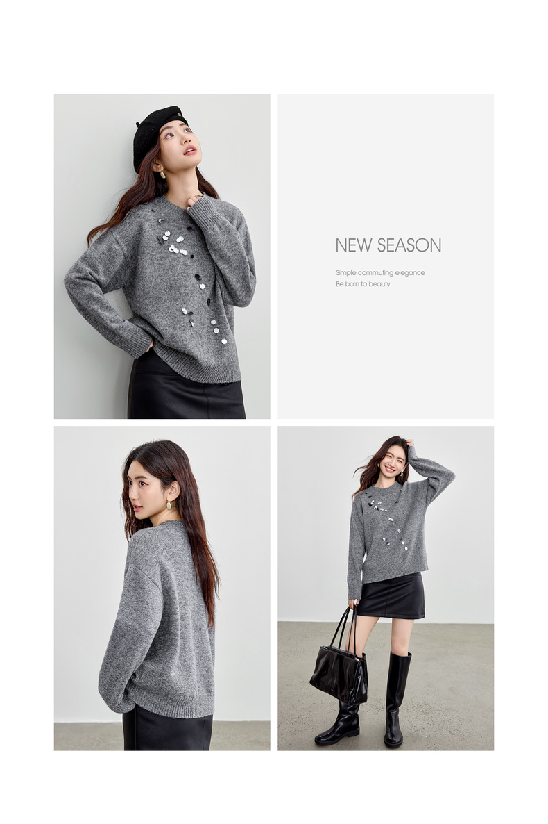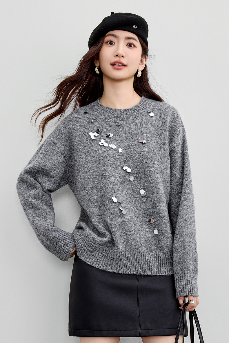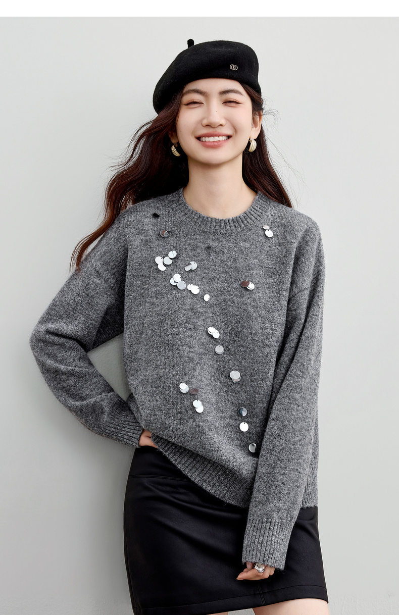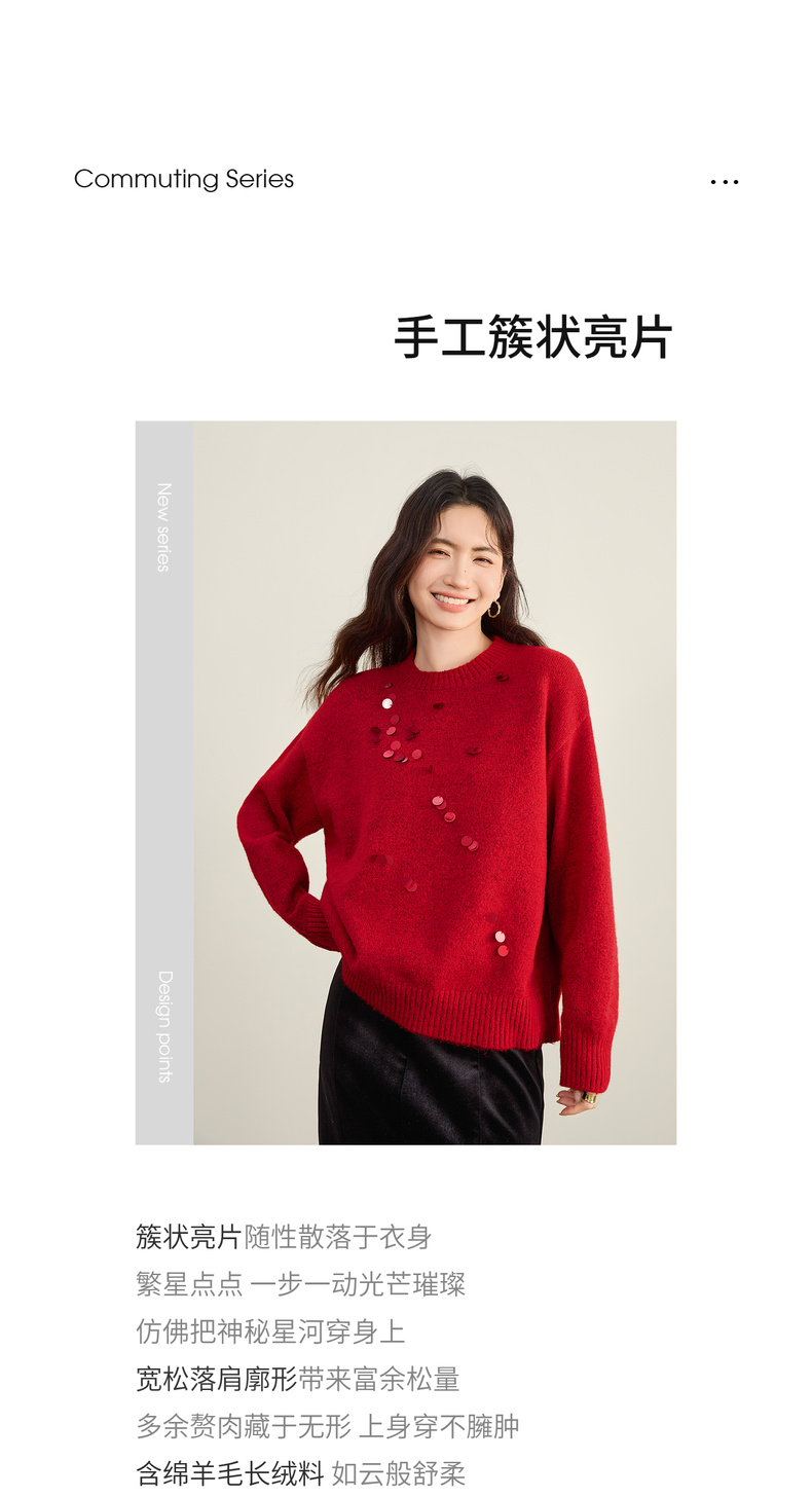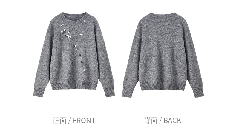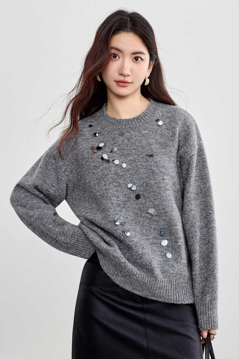【内购】【璀璨星河系列】设计感手工簇状亮片圆领含绵羊毛软糯弹力毛衣-W54EE3142