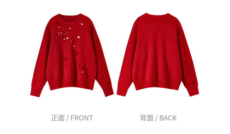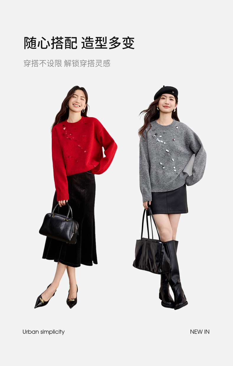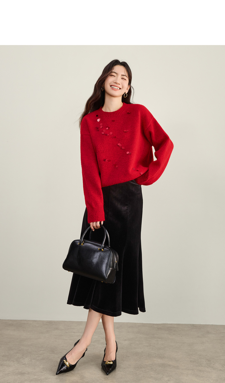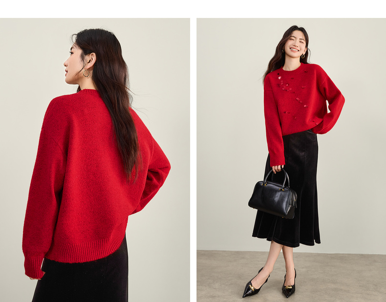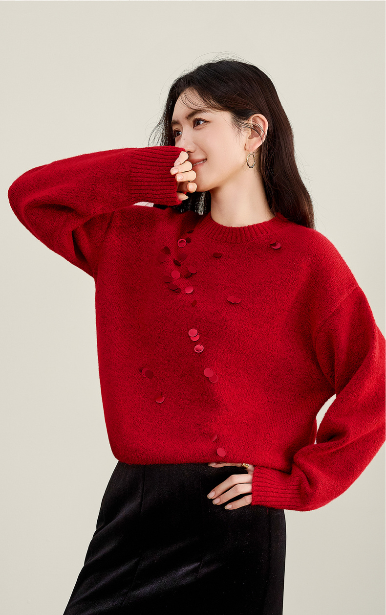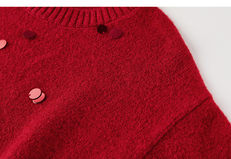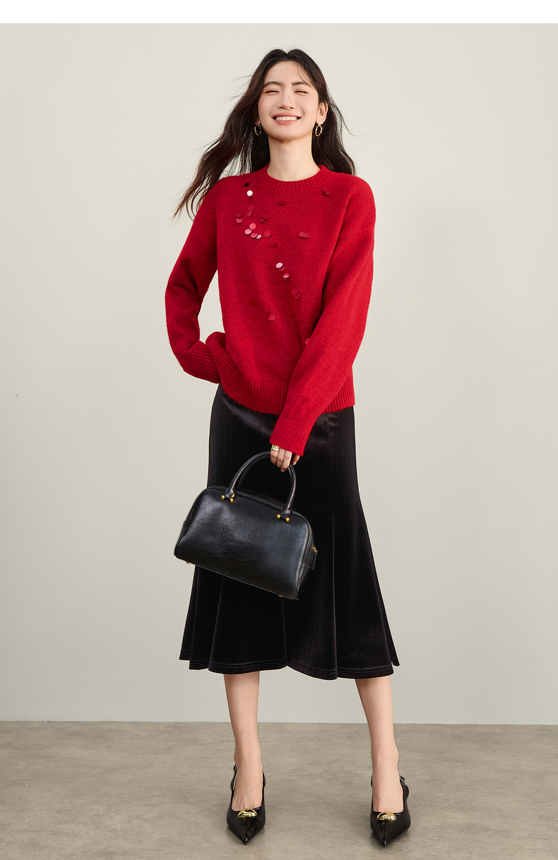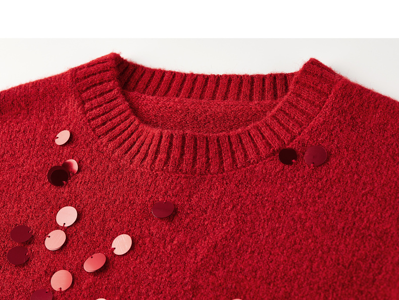 【内购】【璀璨星河系列】设计感手工簇状亮片圆领含绵羊毛软糯弹力毛衣-W54EE3142