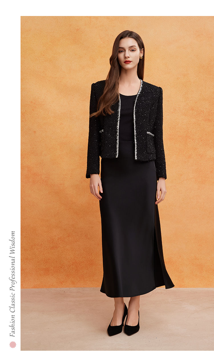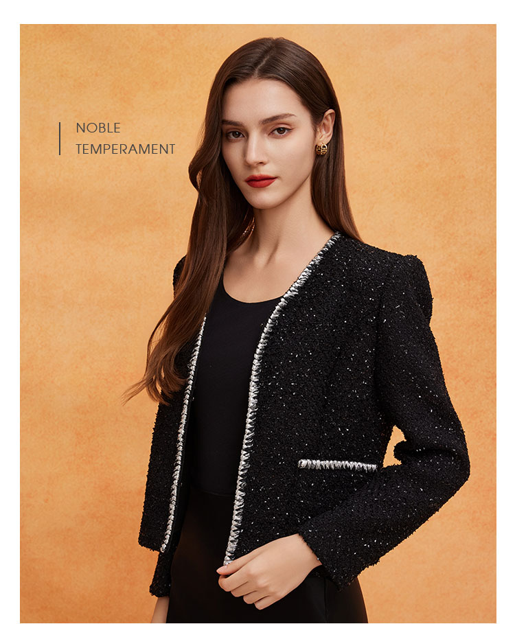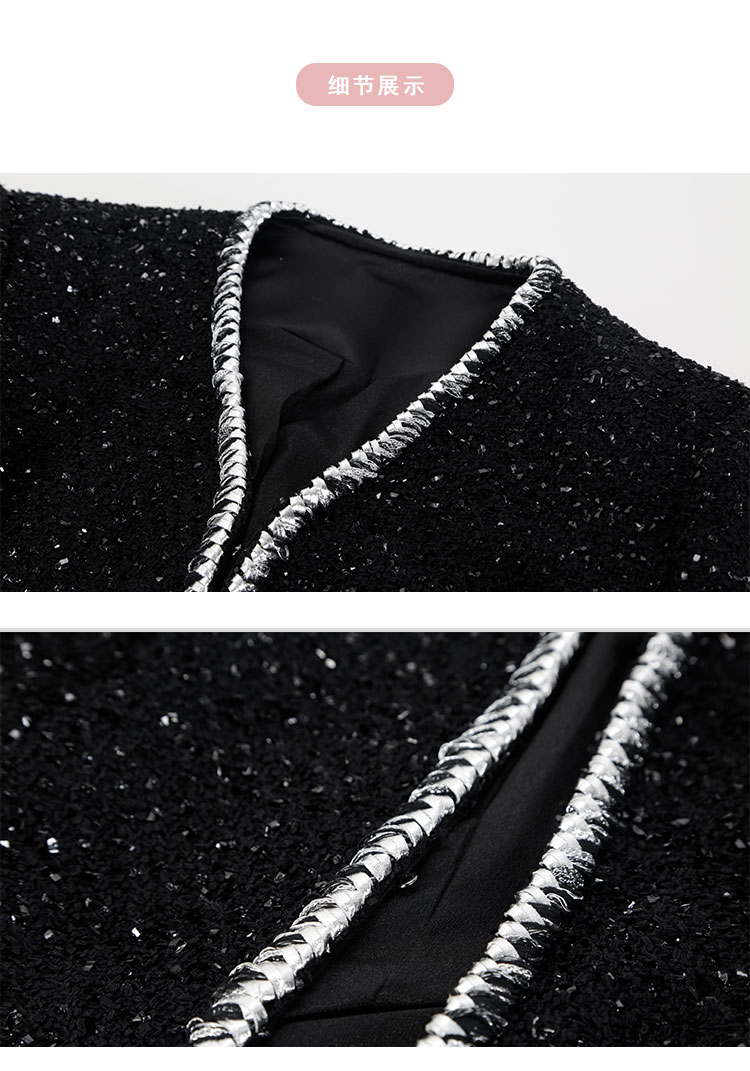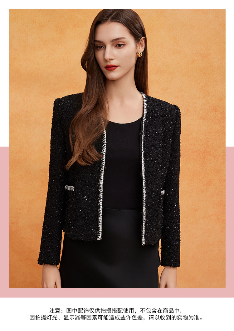 QE101斯尔丽25春季新款低调奢华箱式小香风手工编制装饰边直身型外套