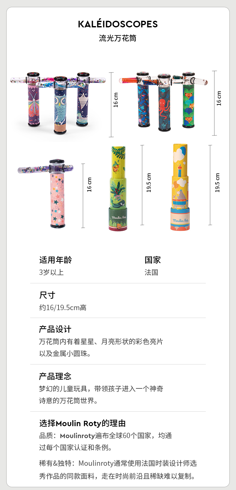 Moulin Roty 金属 万花筒 适合3岁+ 流光溢彩 金属玩具系列 法国品牌-720374