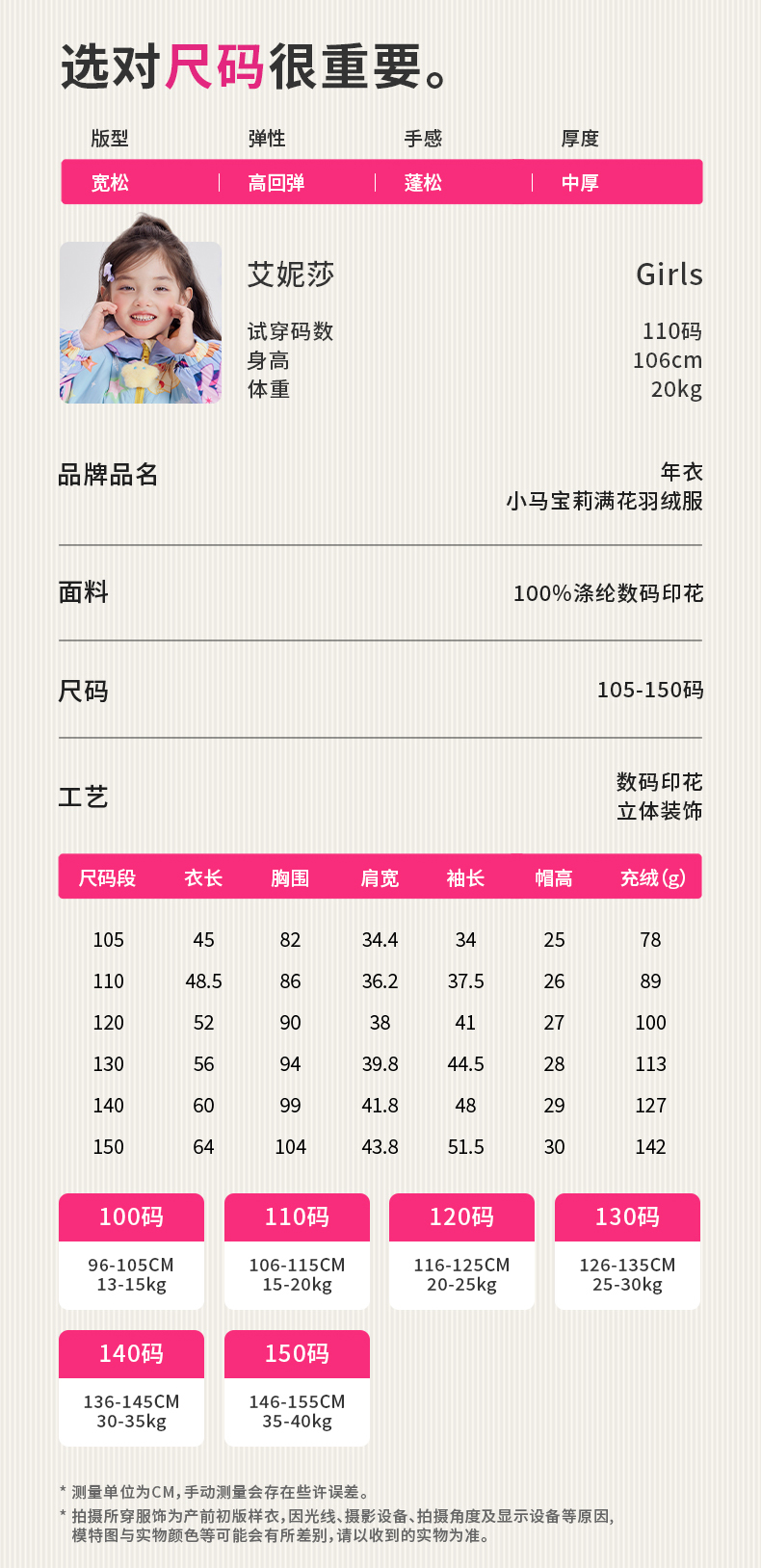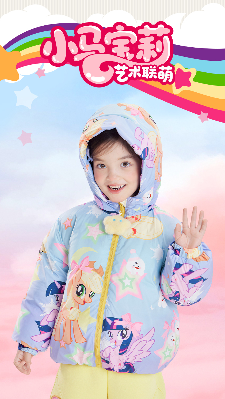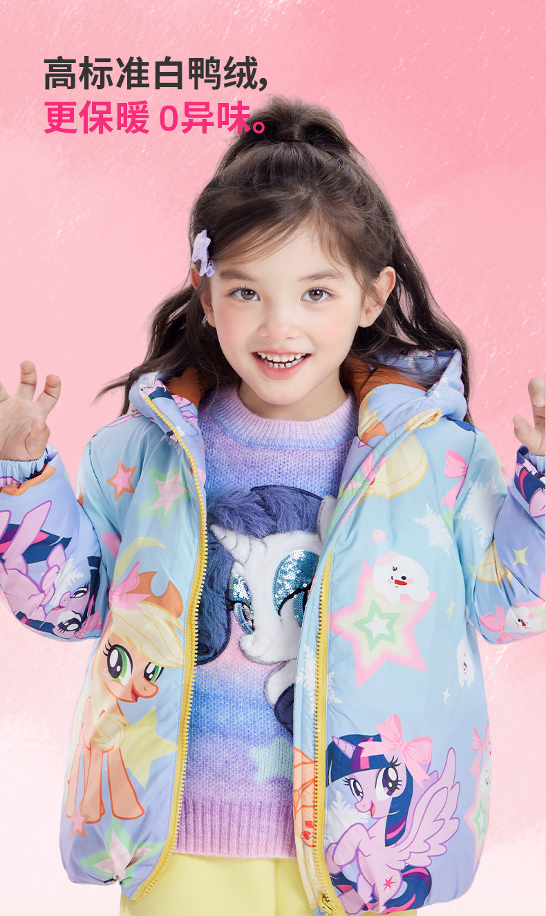 小马宝莉联名年衣童装羽绒服冬季新款女童保暖小马宝莉满花羽绒服