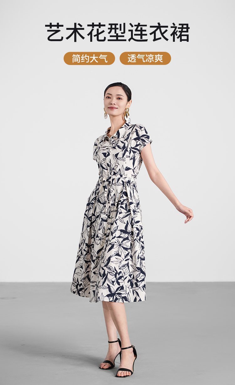 【商场同款】CND5482 “ 艺术花型连衣裙” 轻盈 舒适 透气干爽收腰连衣裙