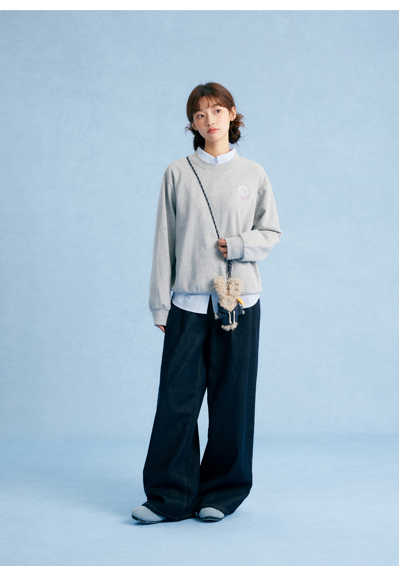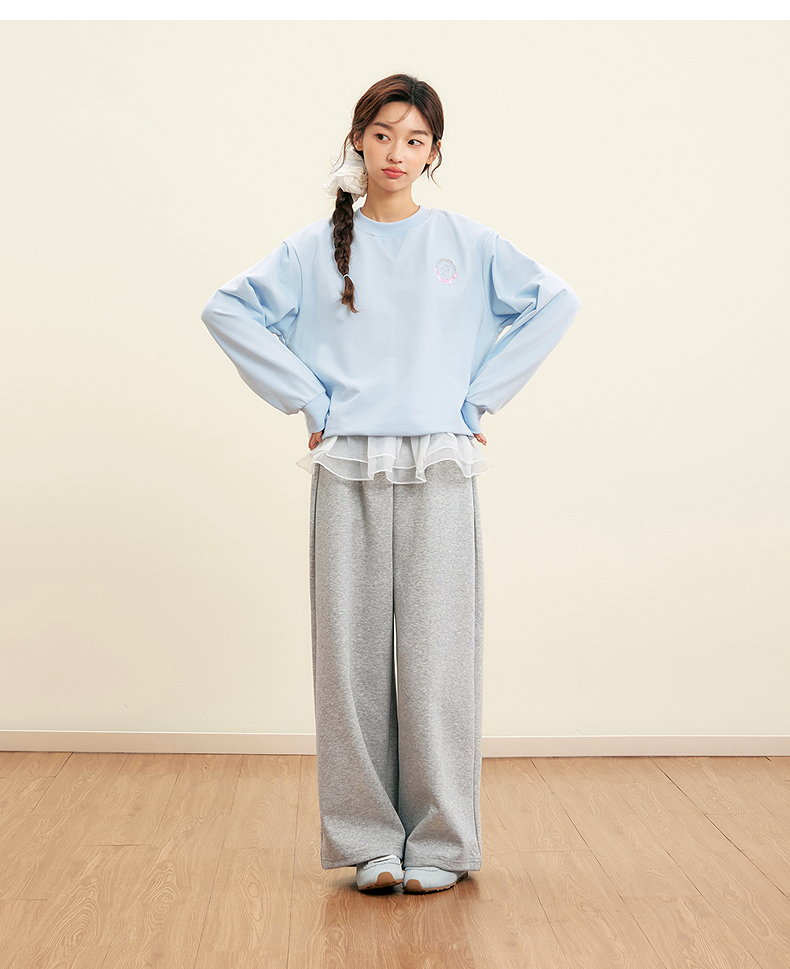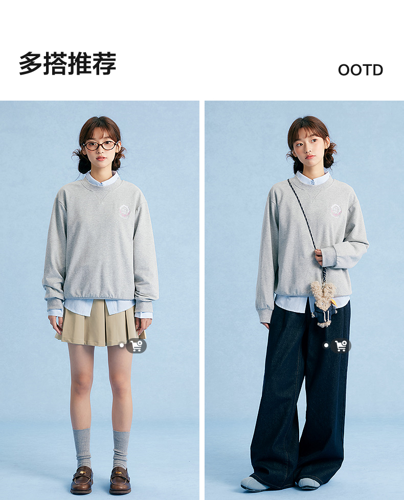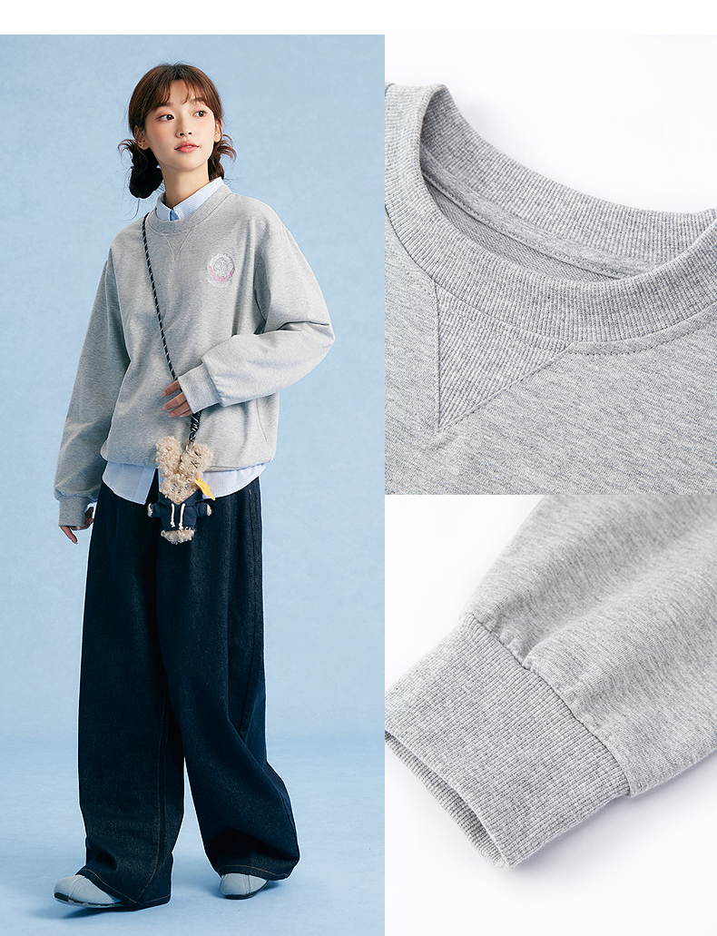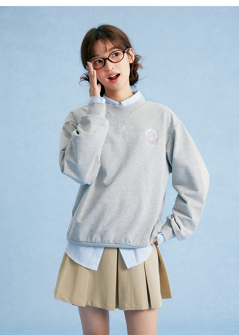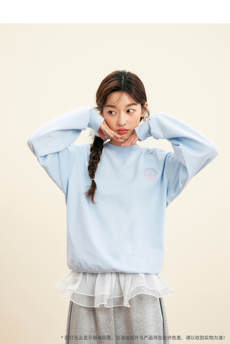 笛莎Deesha青少年女童卫衣2025秋季女童甜美刺绣圆领卫衣