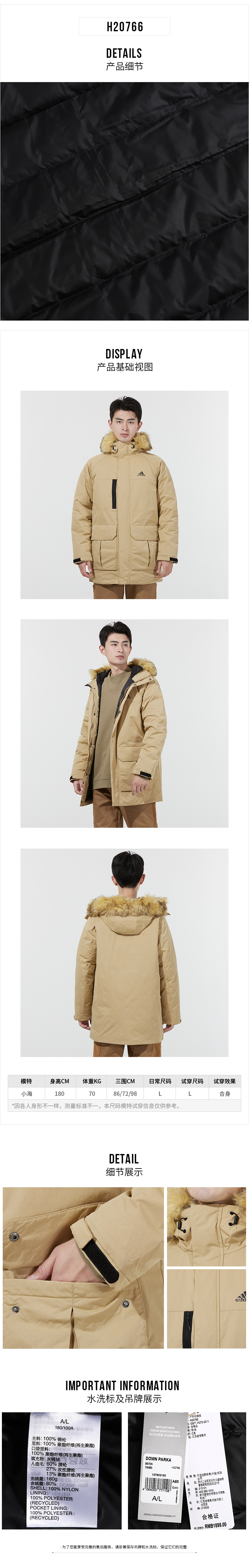 adidas男装羽绒服 2021冬季新款保暖运动时尚大毛领工装休闲夹克外套H20766