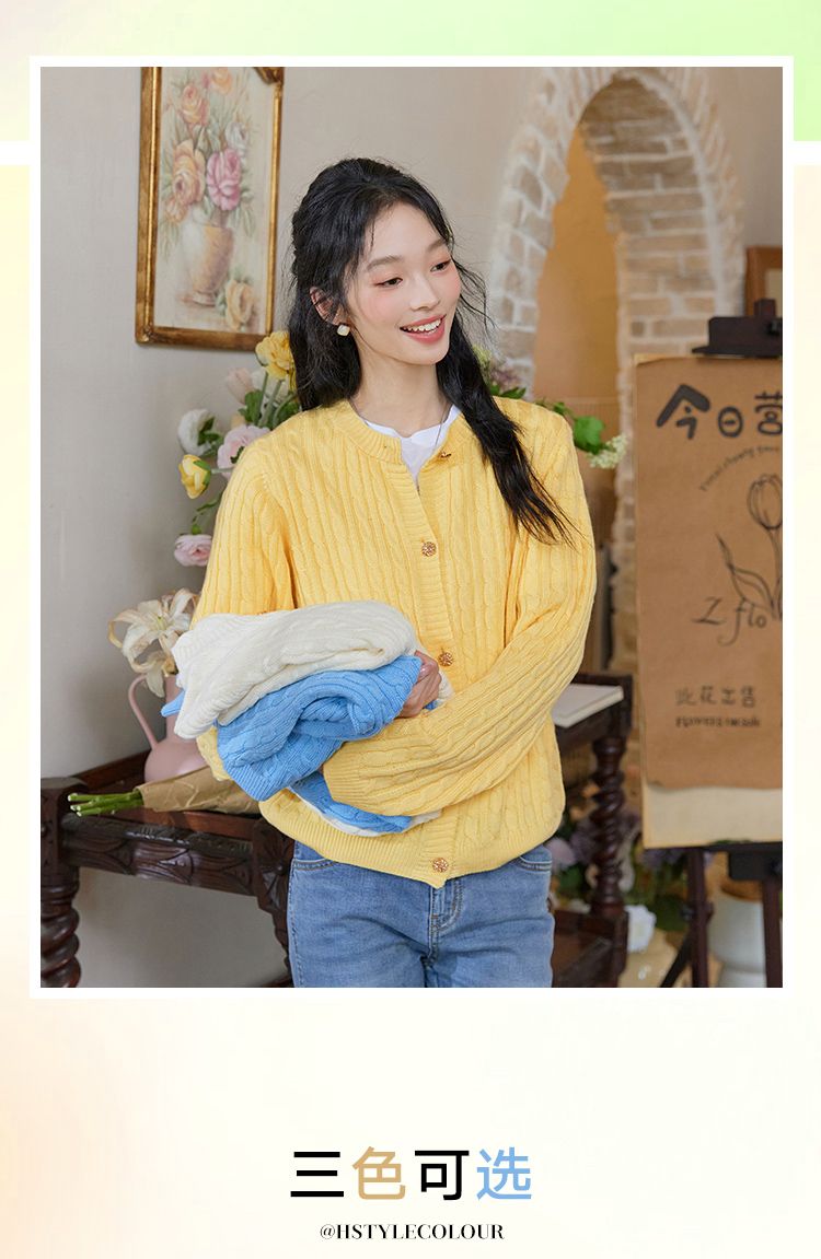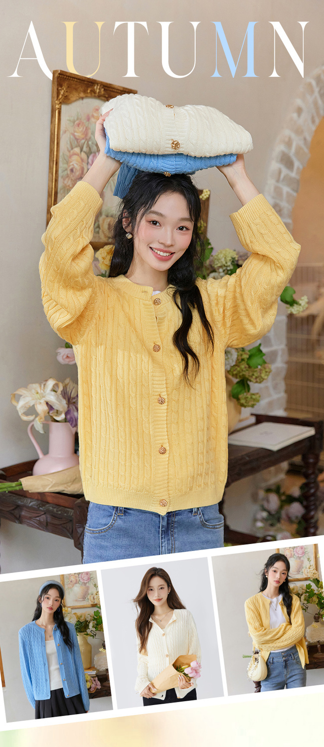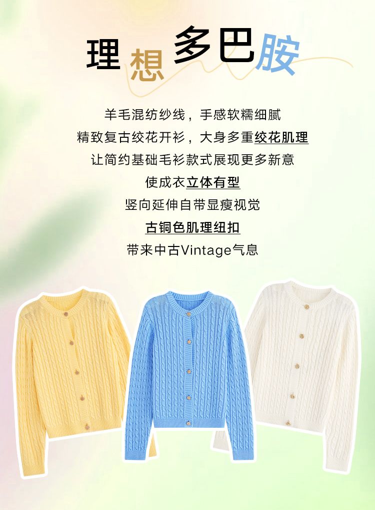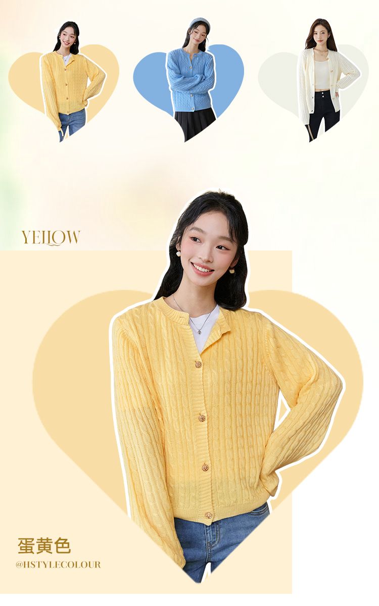 韩都衣舍多色开衫2023秋新款多巴胺穿搭甜美毛针织外套女HDK1000