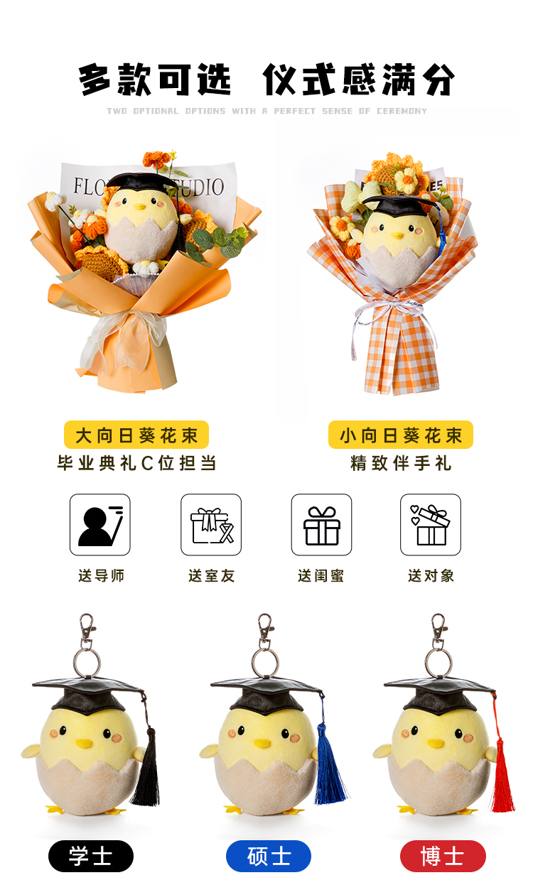 【实付满199送钥匙扣】【毕业蛋向日葵花束】可定制创意纪念摆件毕业送礼礼品礼物学士/硕士/博士