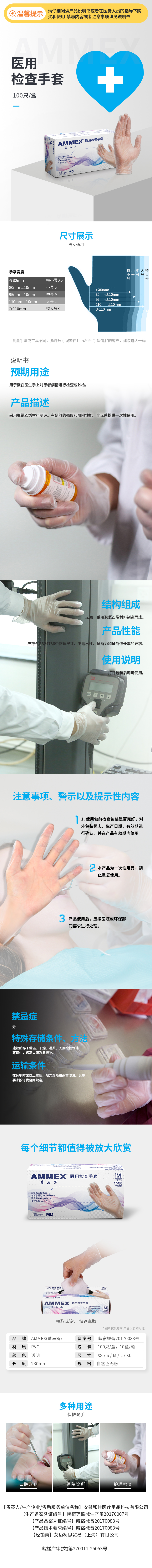 医用检查手套(PVC 透明 光面)-GPX3M-苏宿械备20190023