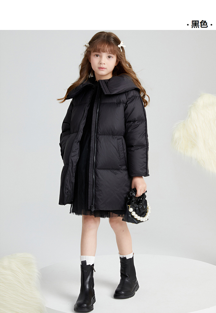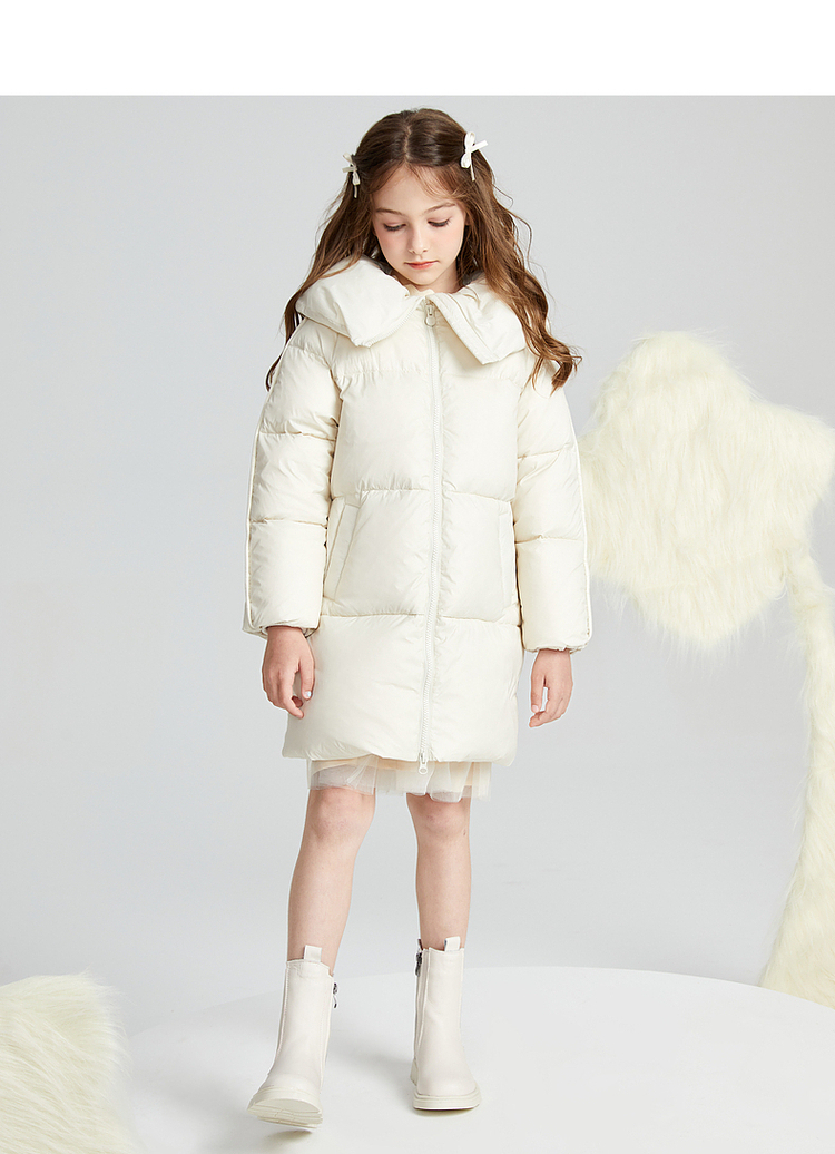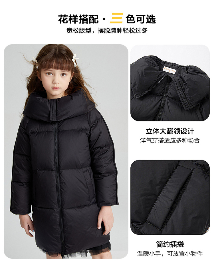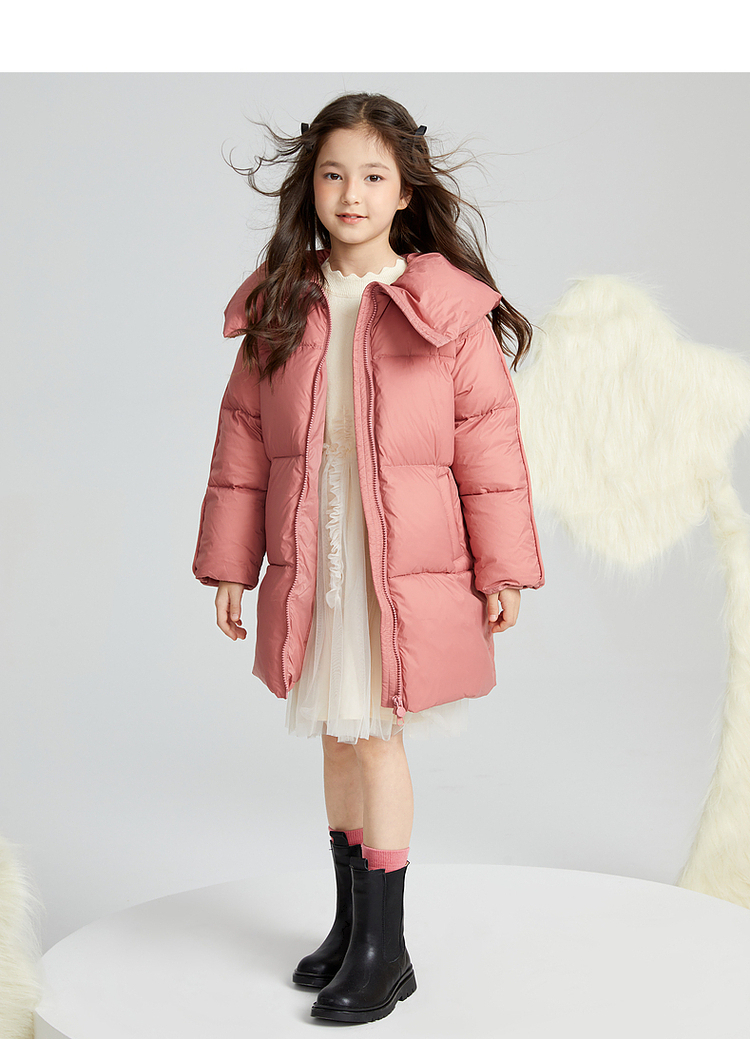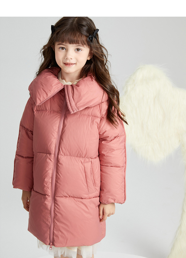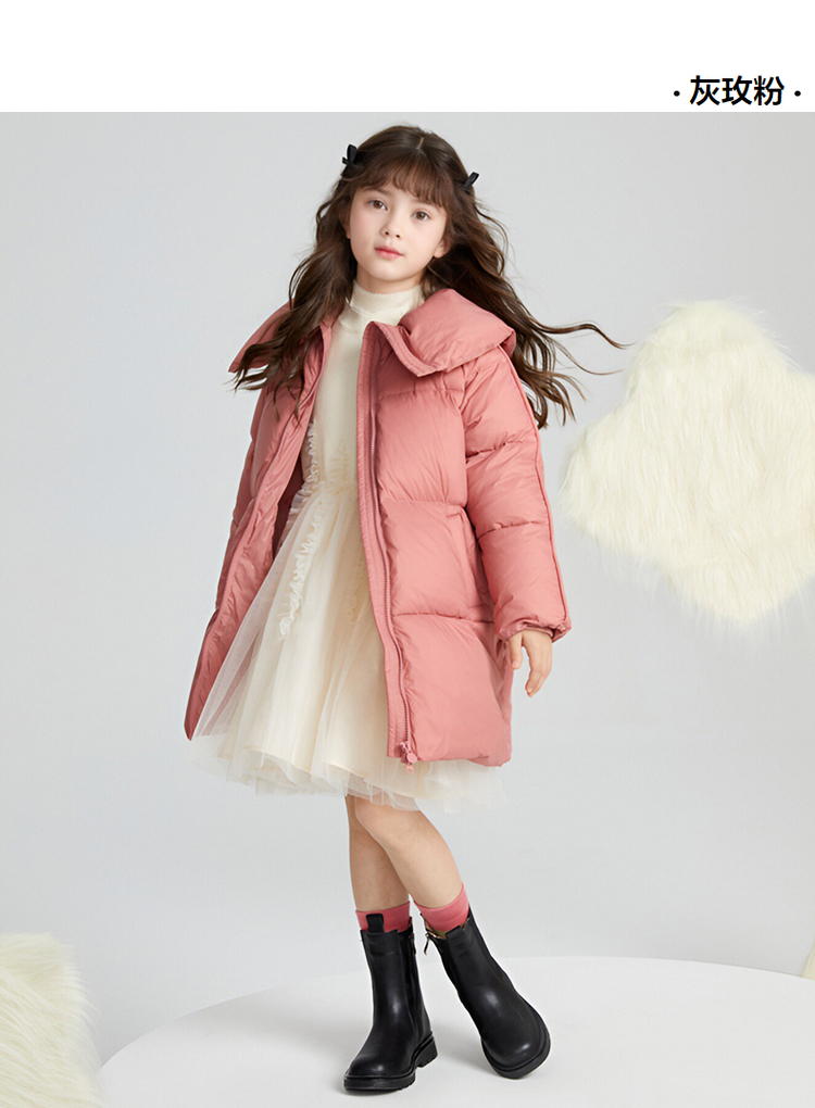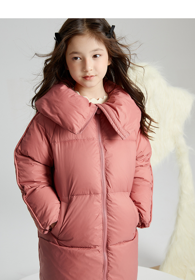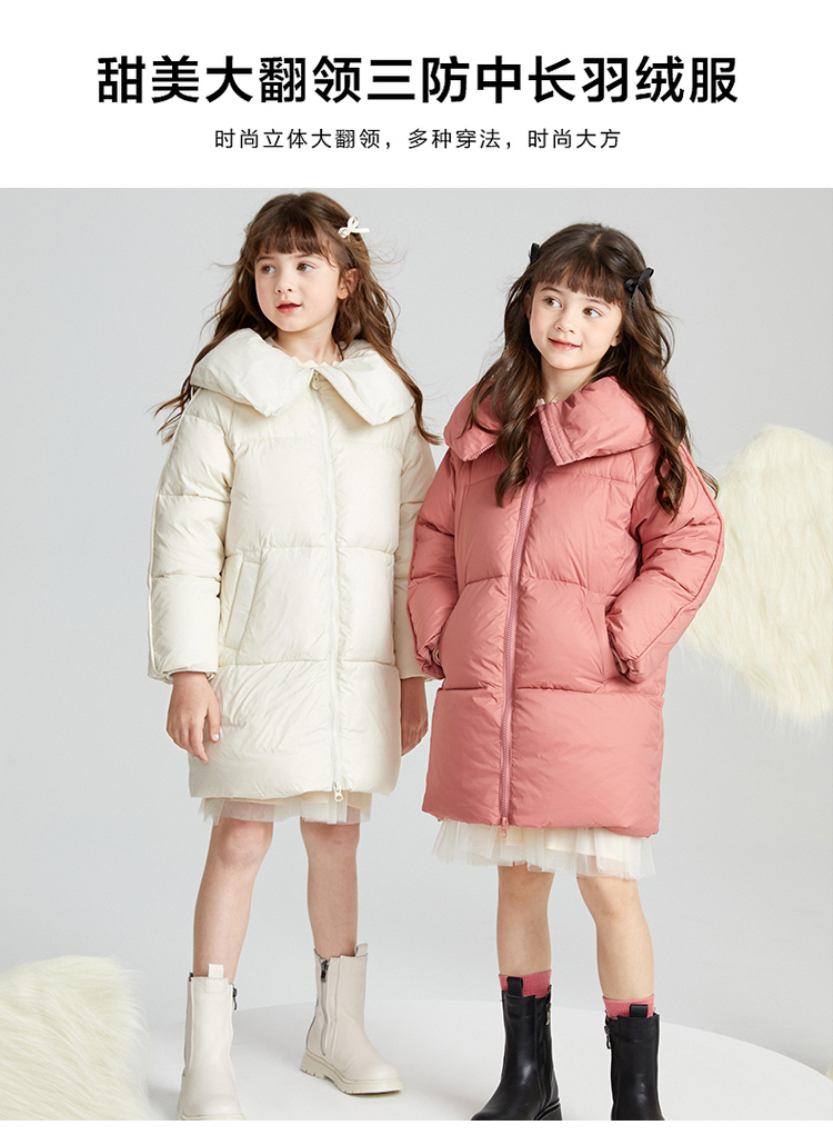 笛莎千与2024冬季新款男女童同款甜美大翻领三防中长羽绒服