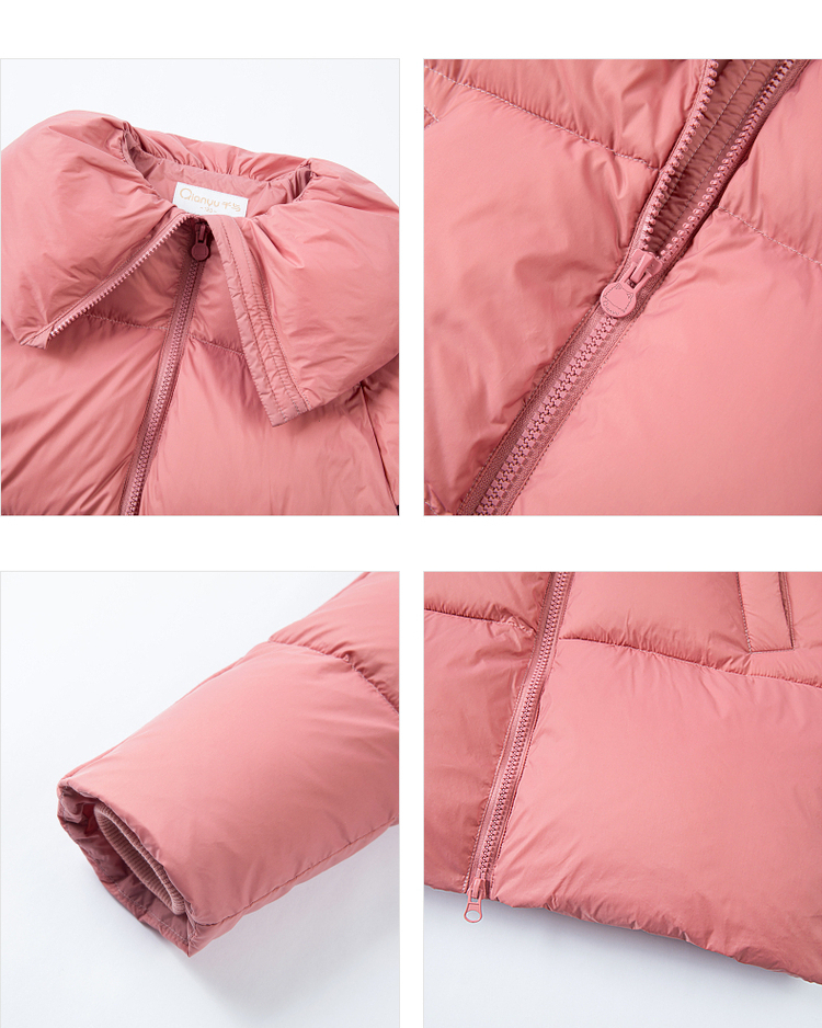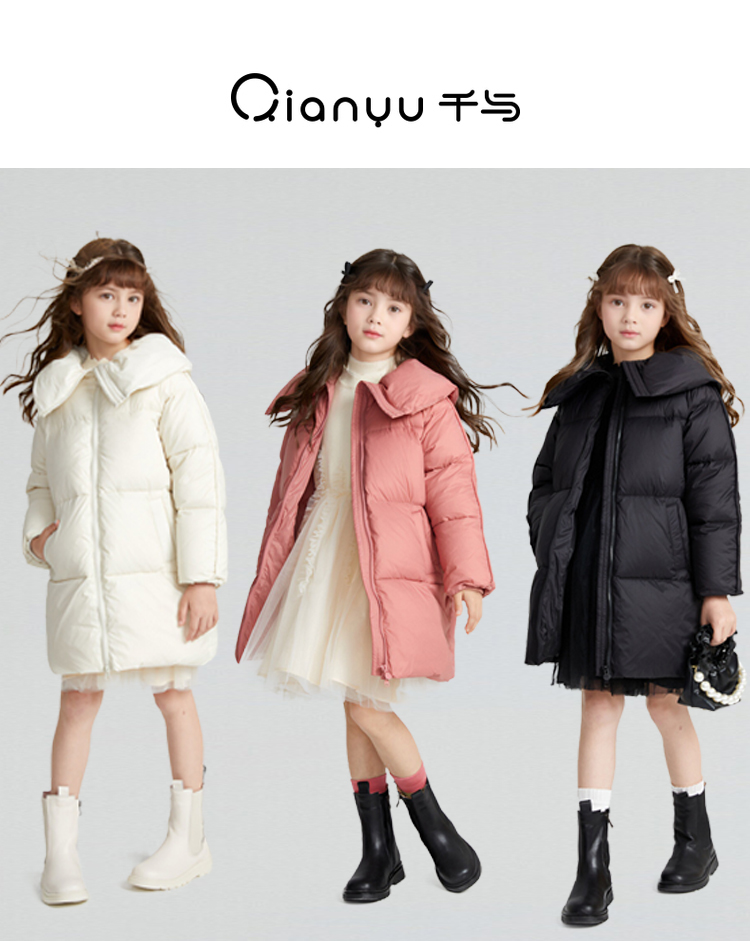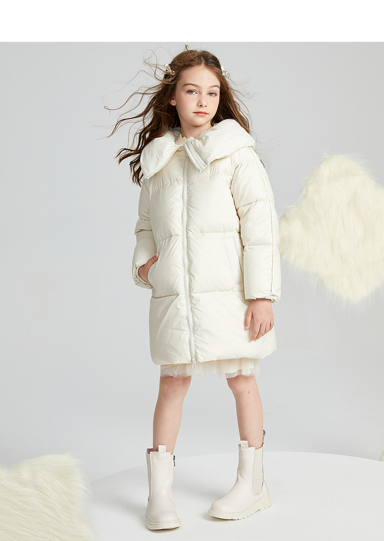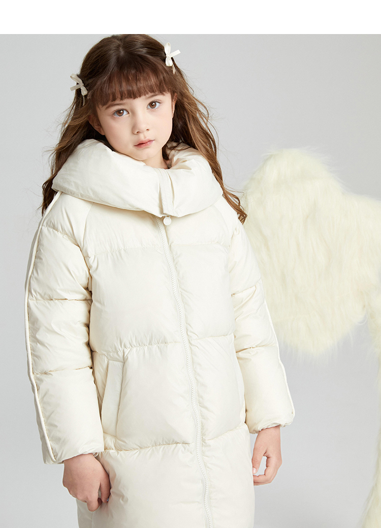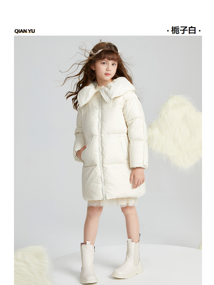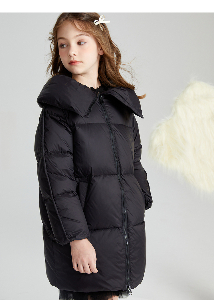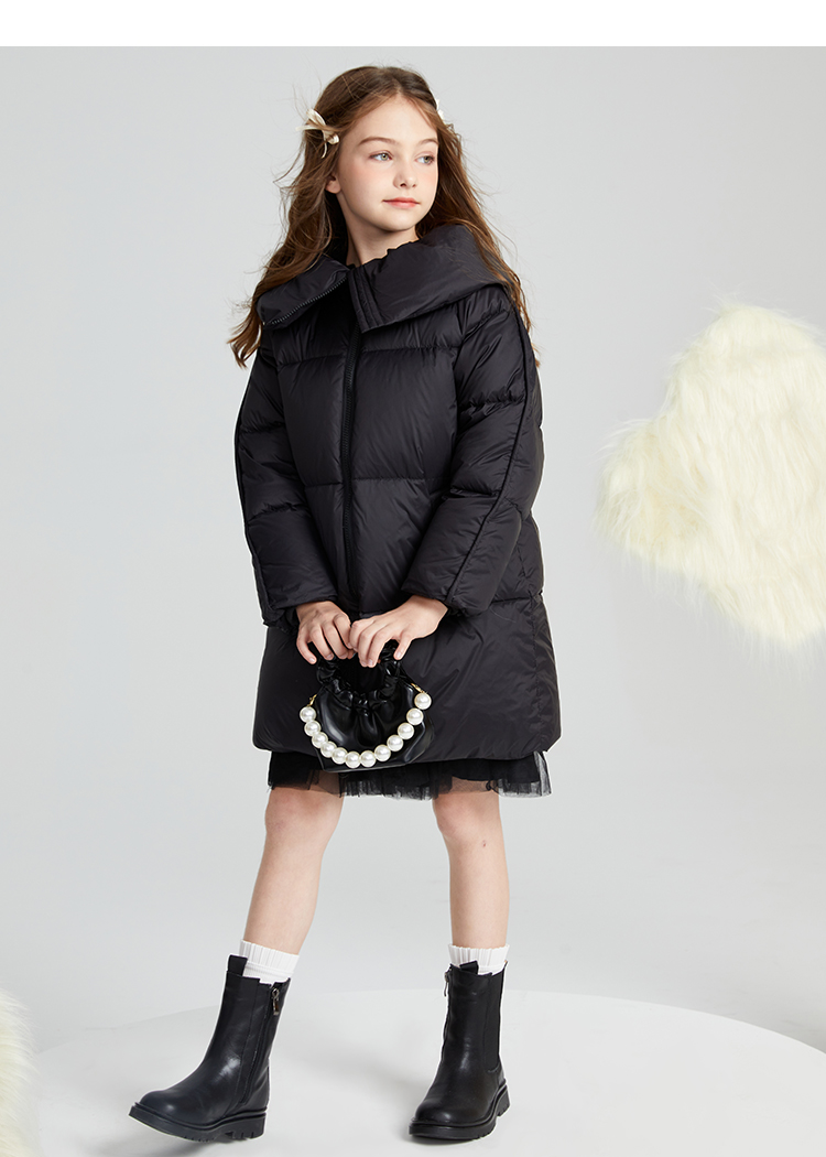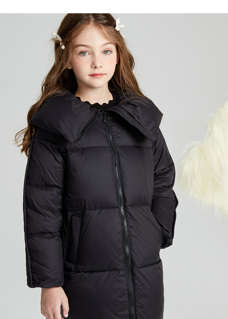 笛莎千与2024冬季新款男女童同款甜美大翻领三防中长羽绒服