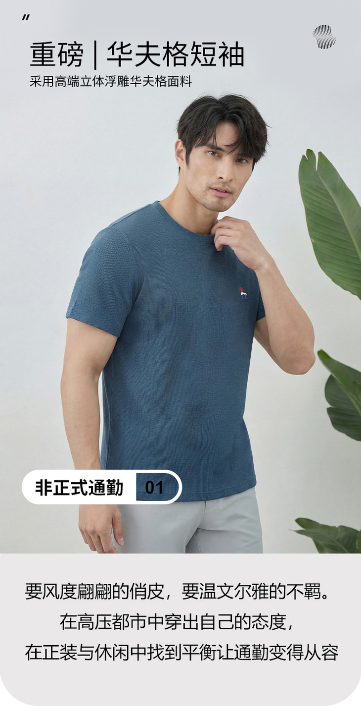 (3件/组,单拍不发)🔥爆款上新 【NECHEER柏奥玛男士华夫格凉感T恤】夏天的“移动空调”🧊✅创新接触凉感认证 接触凉感系数>0.18(行业标准0.15就算优秀)