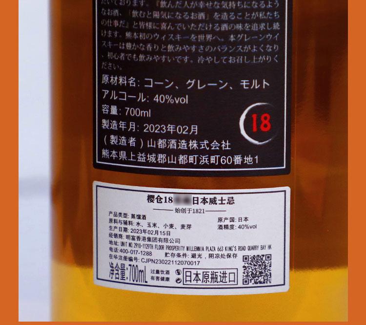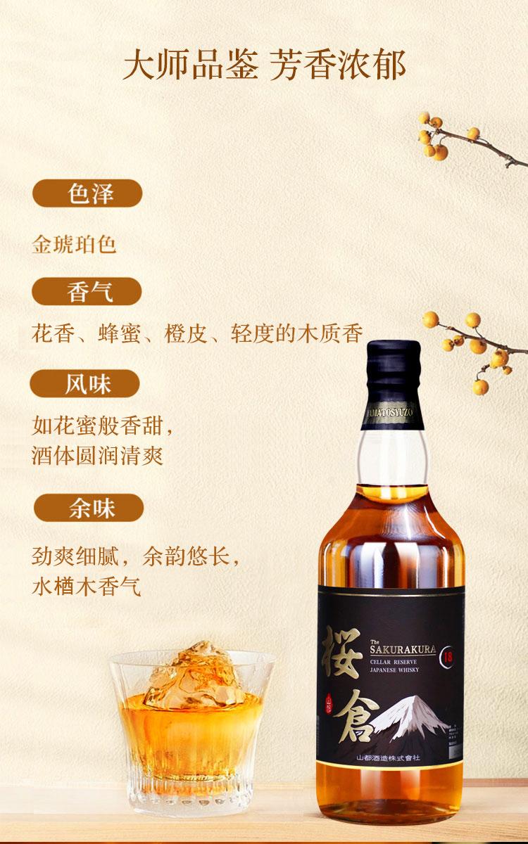 【流动的液体黄金】日本原瓶进口樱仓18窖藏日本威士忌40度洋酒700ml 白川水源 好水酿好酒