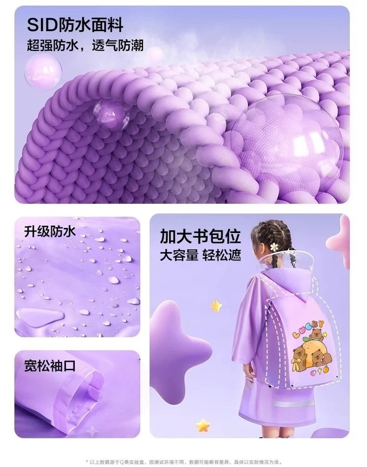 认准实拍📸全部都是商超品质 带反光条 升级防水工艺,水滴完全无法渗透; 加宽袖口不束缚,孩子活动更自在; 还有加大书包位,轻松容纳大书包,上学通勤不费劲。