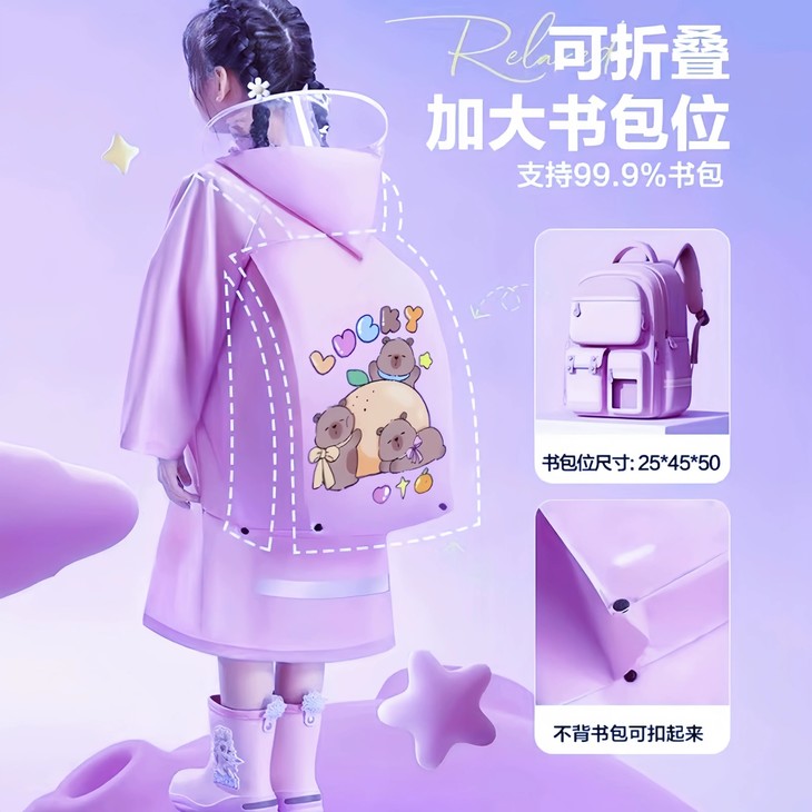 萌趣卡通设计孩子超喜欢, 亮眼配色雨天更醒目, 既是防雨小卫士,也是穿搭小亮点