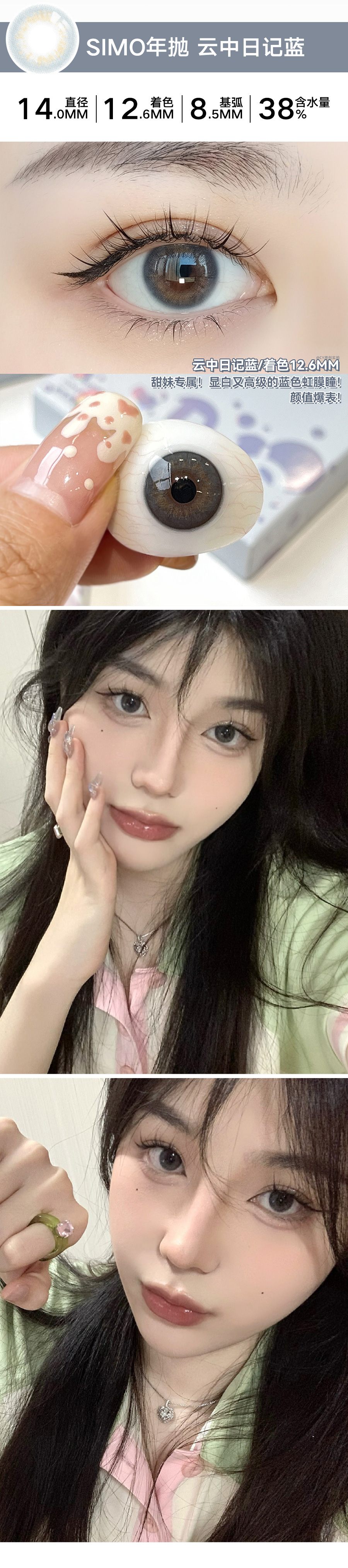 「双版本!」SIMO云中日记日抛/年抛双版本 | 蓝色/灰色仿生虹膜瞳着色12.6mm