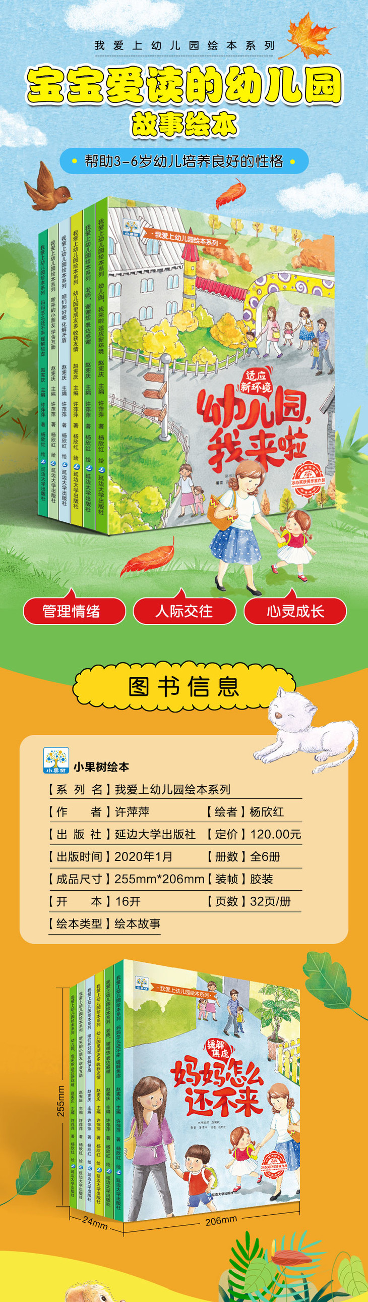 爱上幼儿园系列绘本全6册 我爱幼儿园我来了来啦里朋友多入园入学准备书籍 小班老师推荐阅读儿童3一4到5岁宝宝书绘图故事本4-6岁8