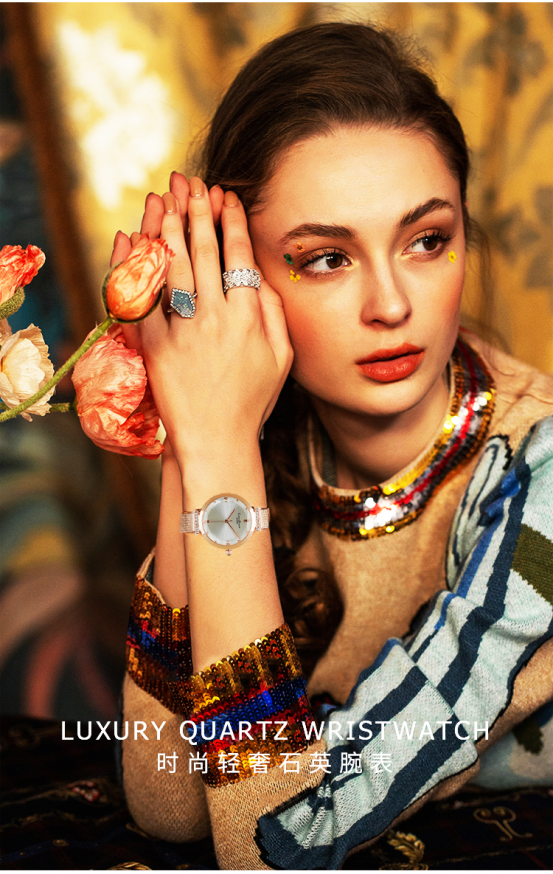 至臻美学,腕间奢享 圆形表身美学艺术设计匠心工艺·造型独特·精致小巧 圆润曲线勾勒饱满造型,碰撞不一样的时尚张力! 专为亚洲女性设计, 将独特美学与匠心技艺紧密交织, 映衬纤细手腕,展现柔美与优雅气质
