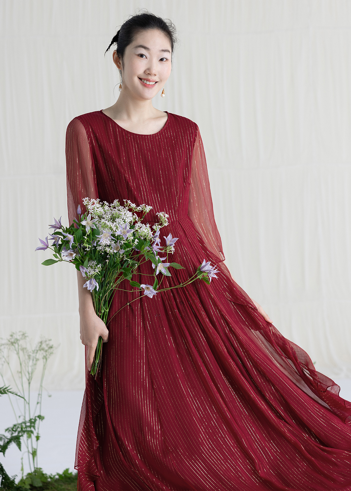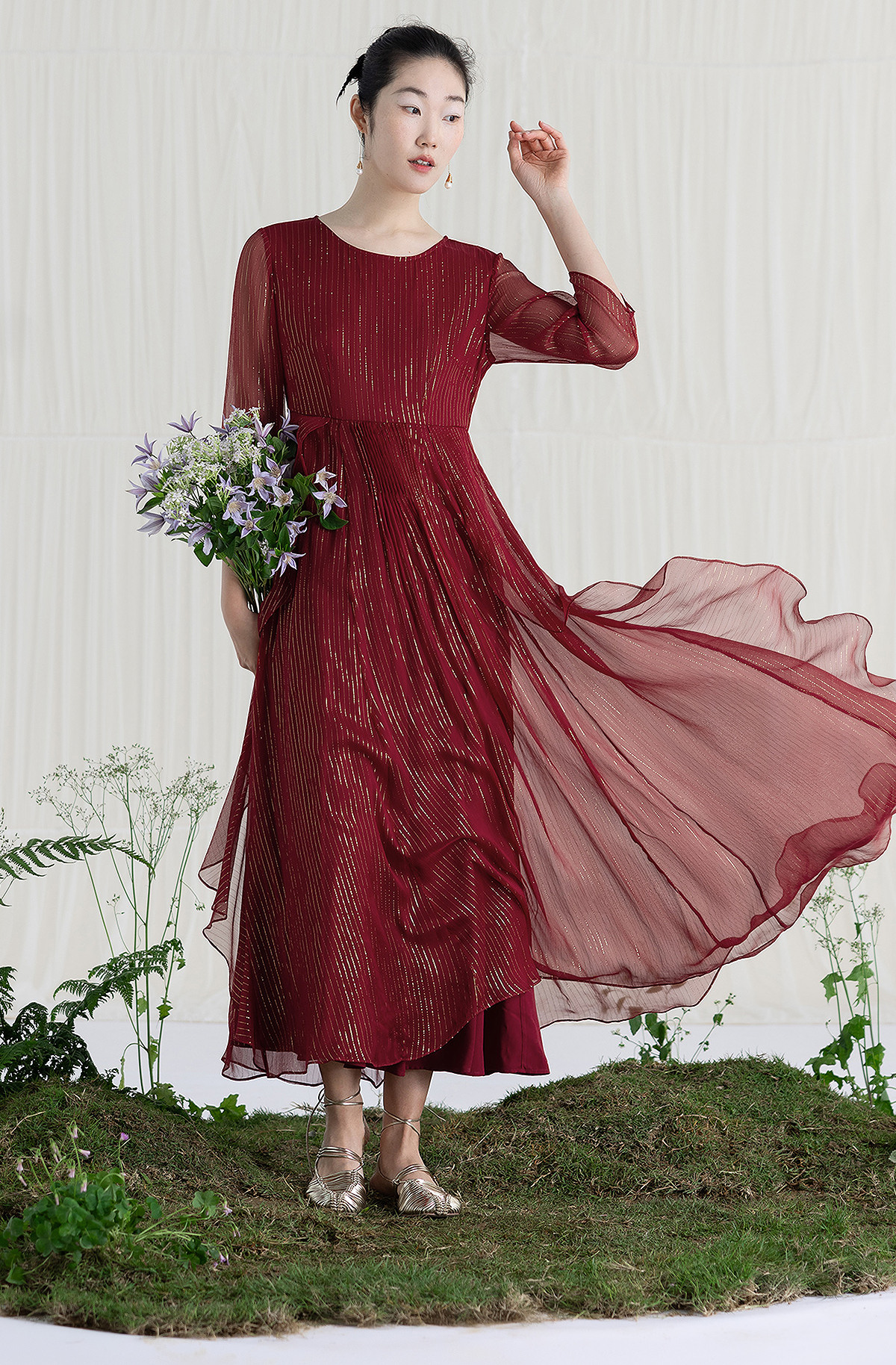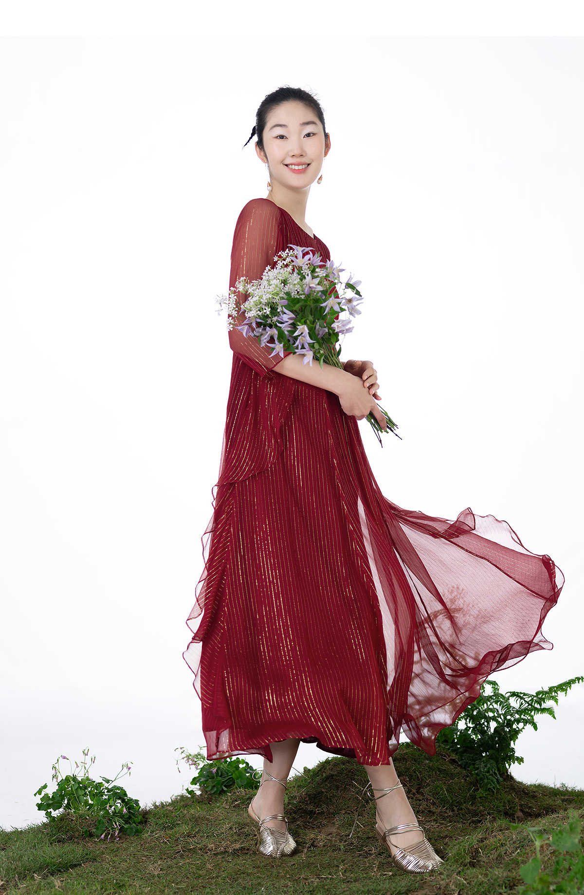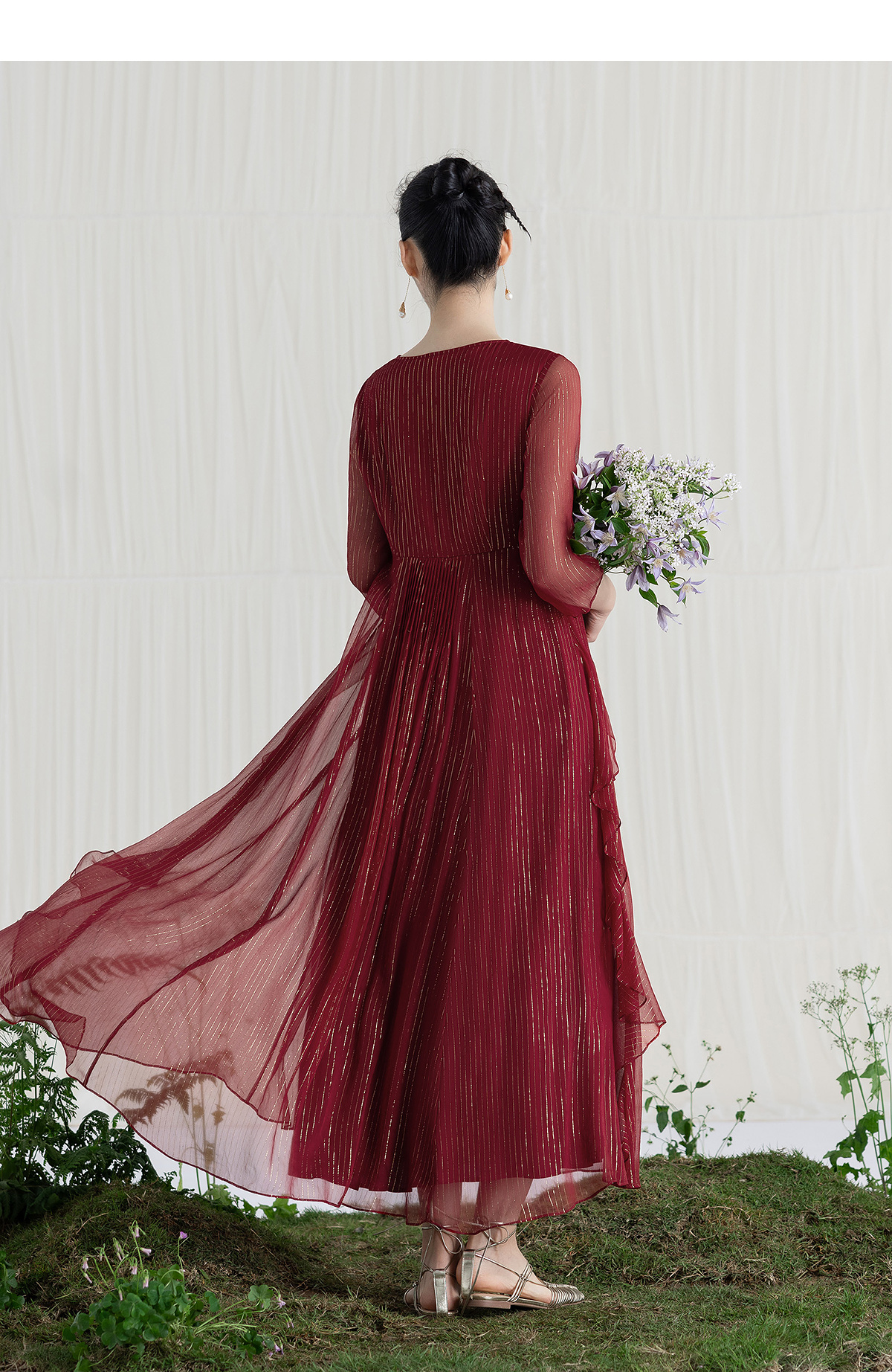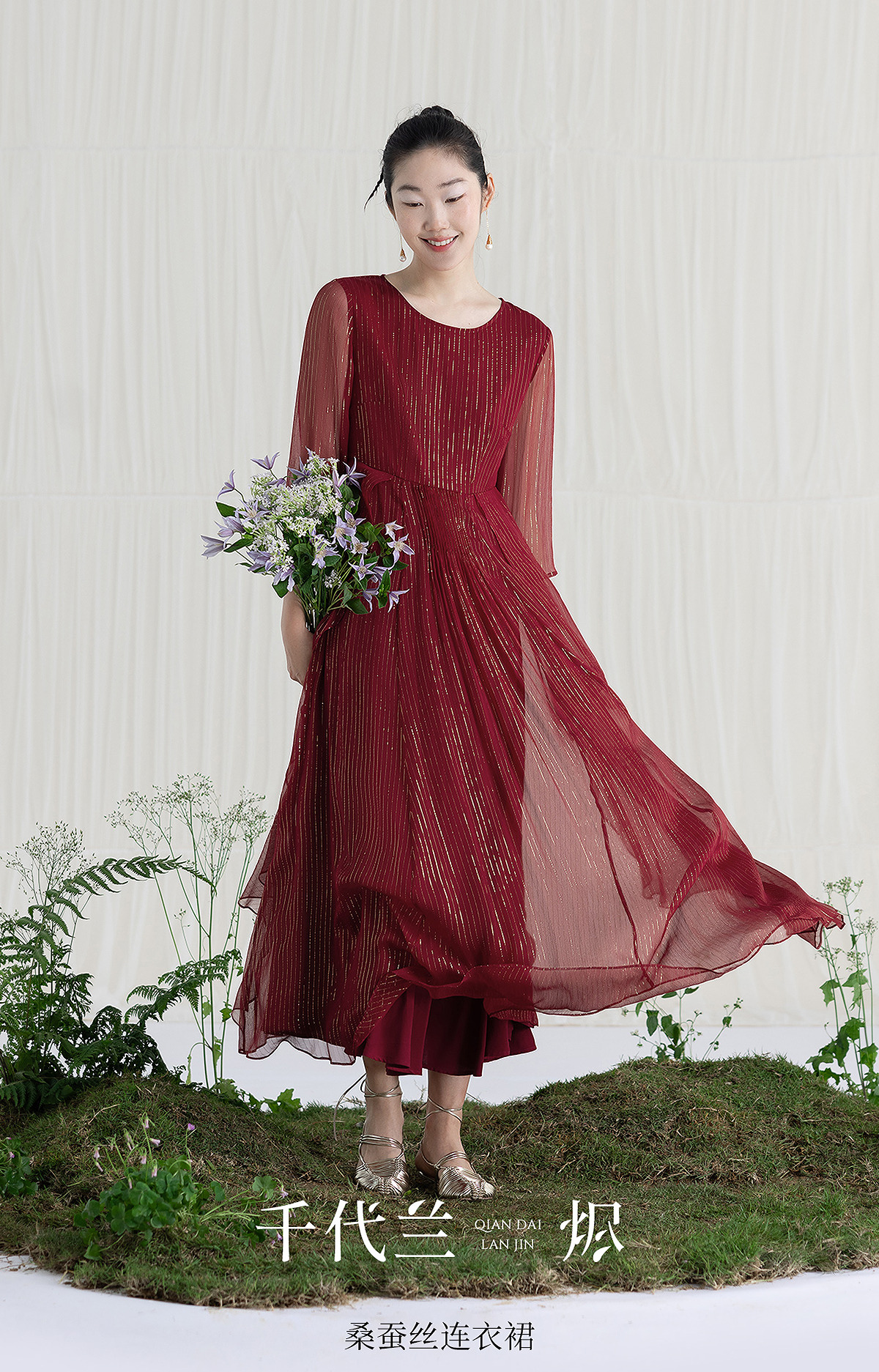 【林栖设计小店】金丝真丝连衣裙飞片裙宽松高收腰显瘦2025夏季新品裙子女1952037