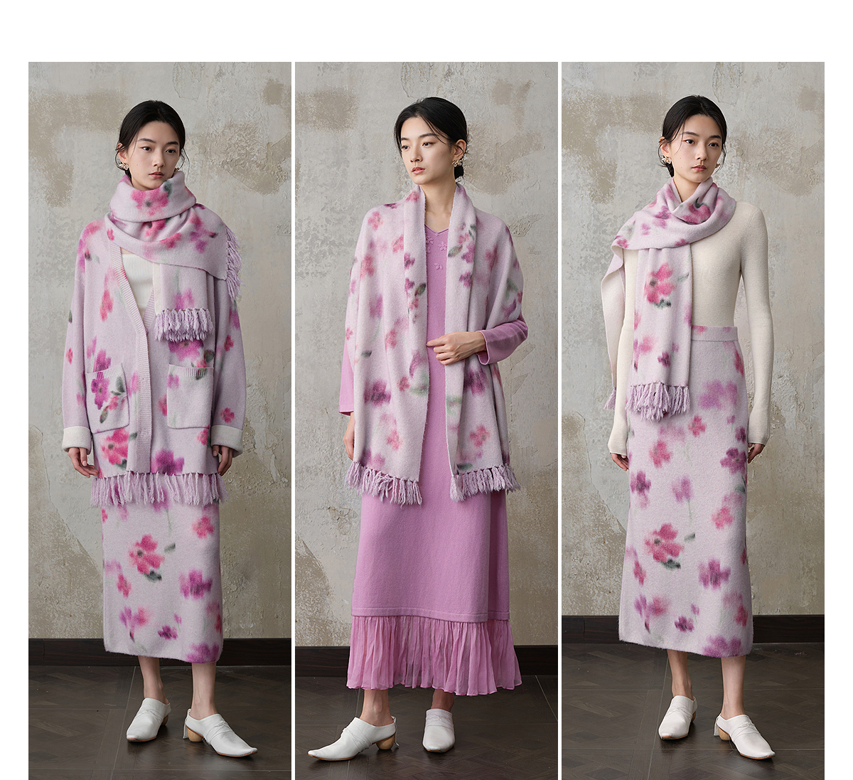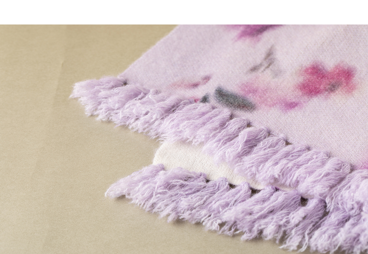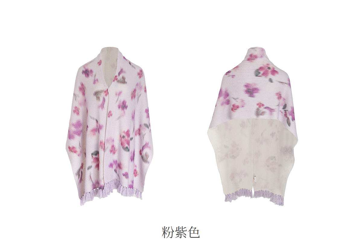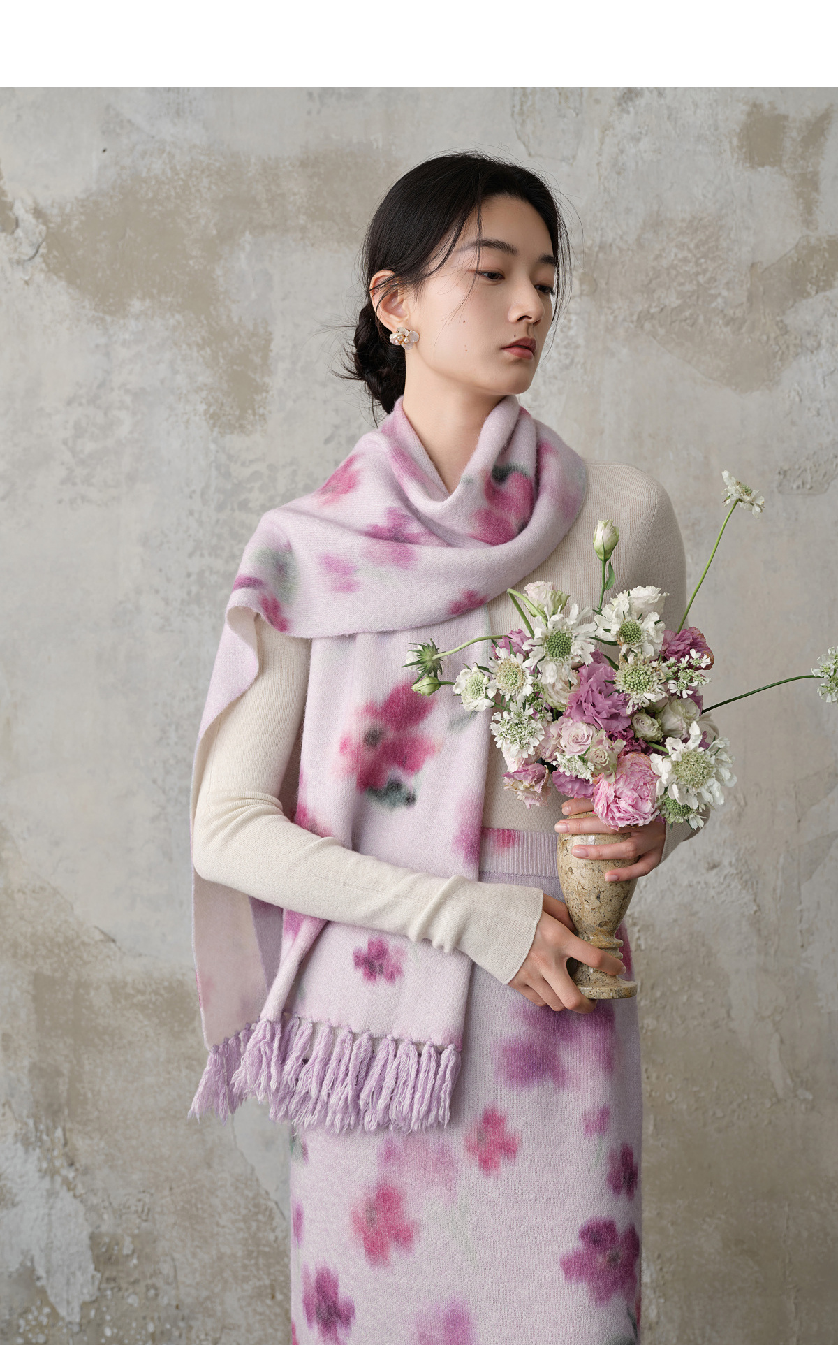 【林栖设计小店】木槿紫听风系列印花围巾流苏羊驼毛优雅保暖百搭2025秋冬新款毛织披肩女2954080