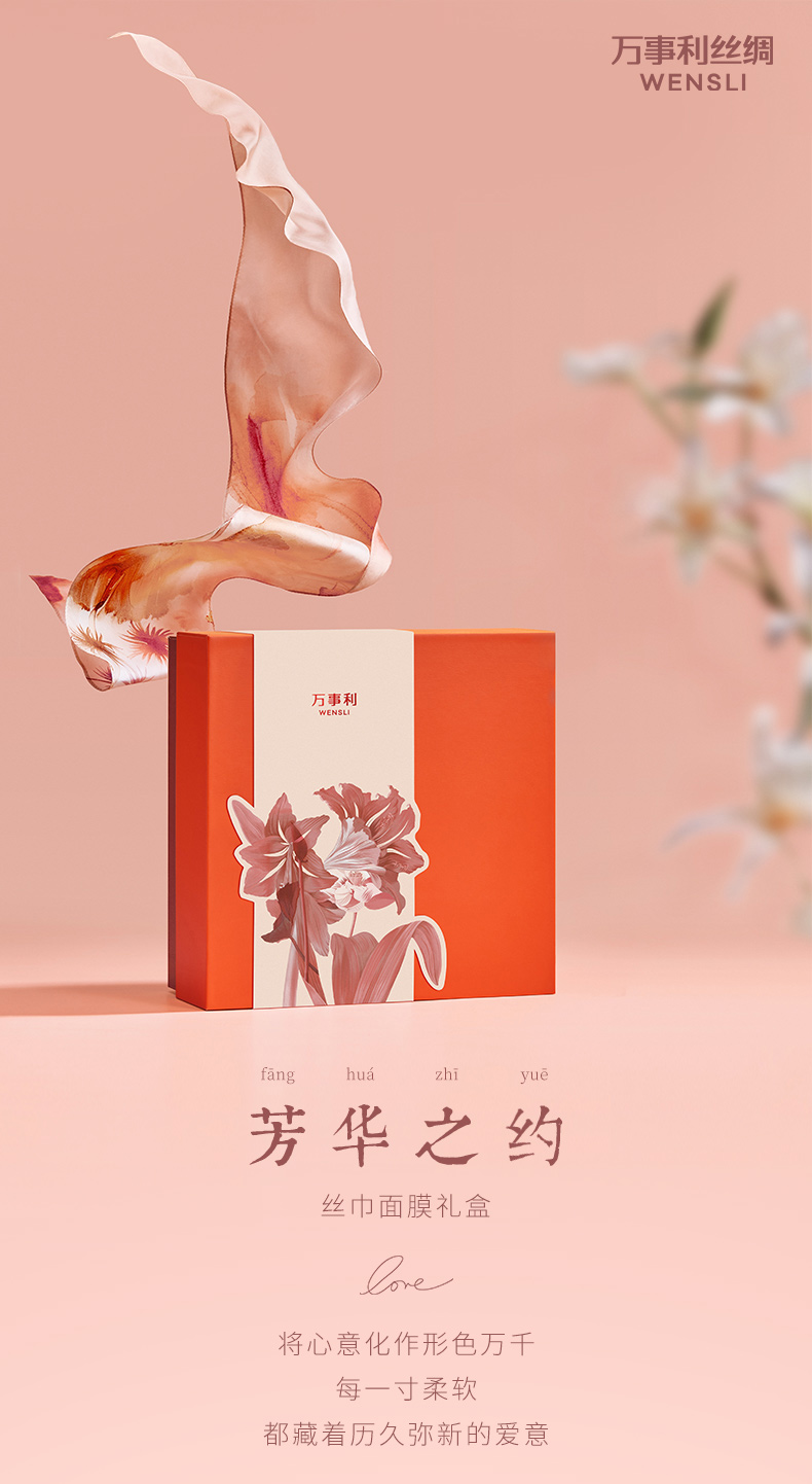 万事利“芳华之约”丝巾礼盒(中方巾、小长巾)