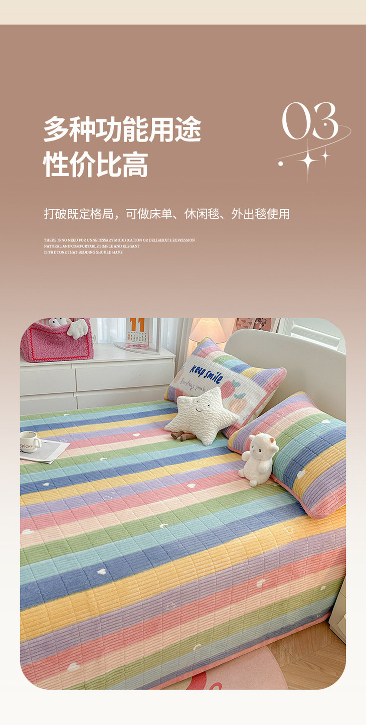 【冬季加厚牛奶绒床盖三件套】双面水晶加绒夹棉床单榻榻米保护垫铺盖