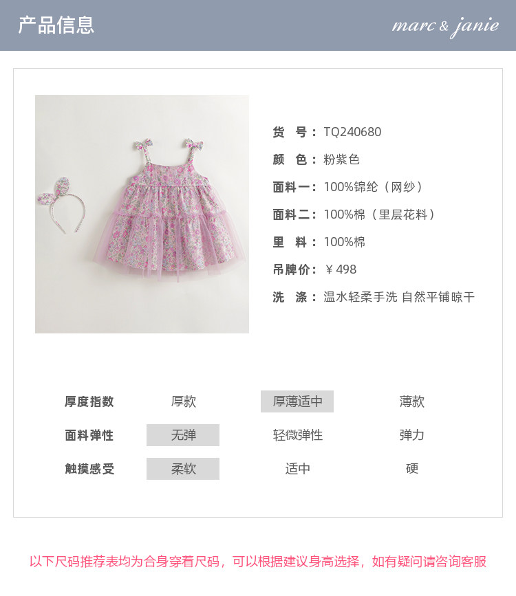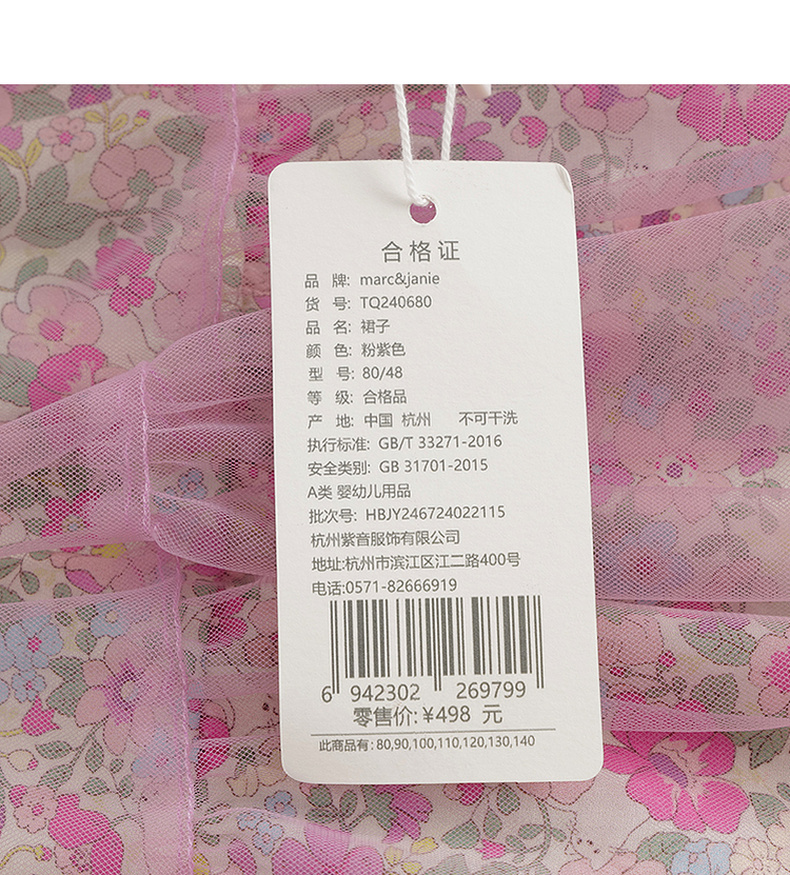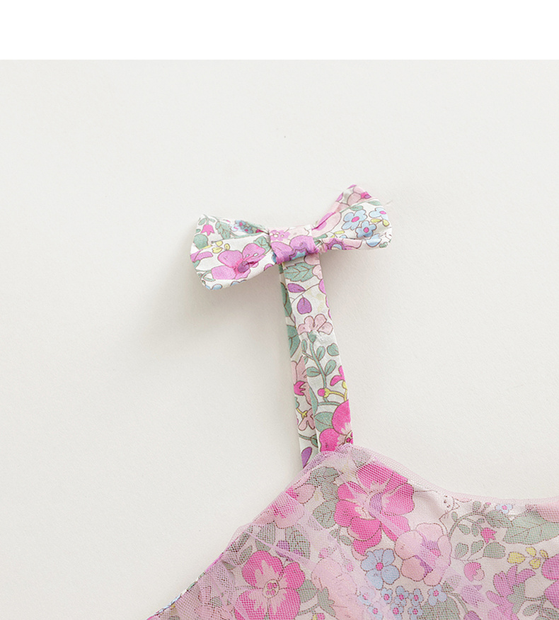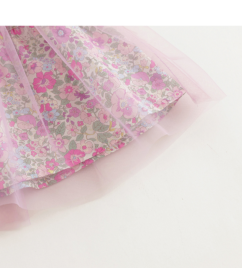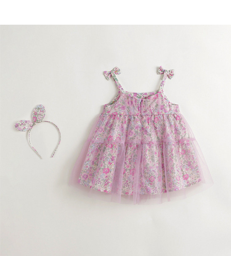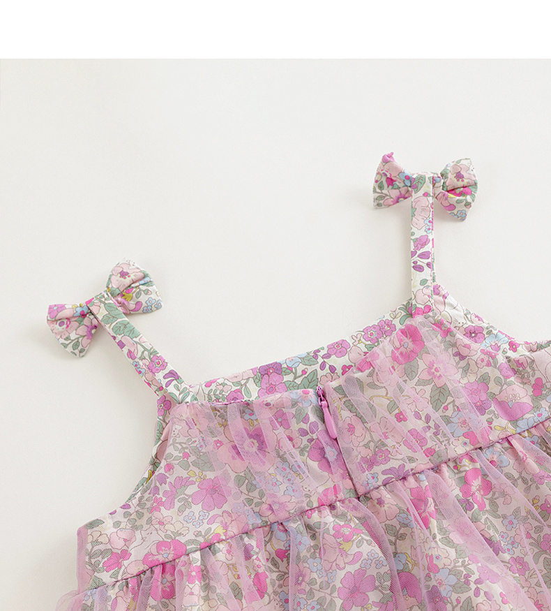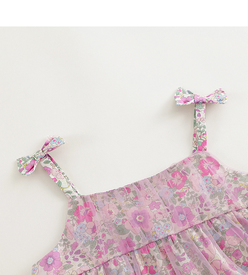 马克珍妮女童粉紫花园吊带连衣裙网纱裙2024年夏装新款裙子240680