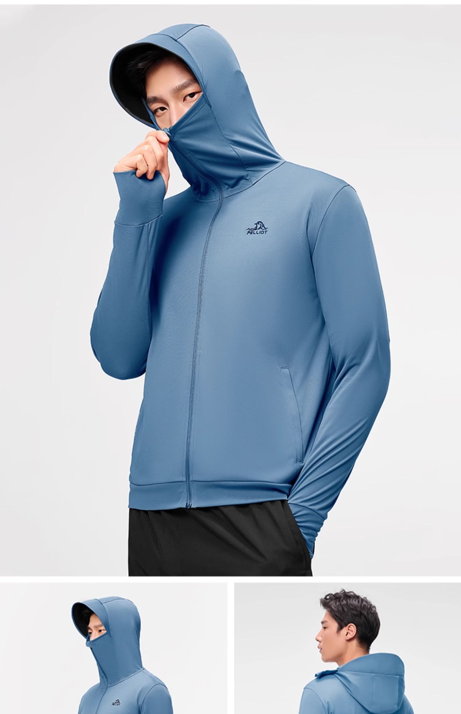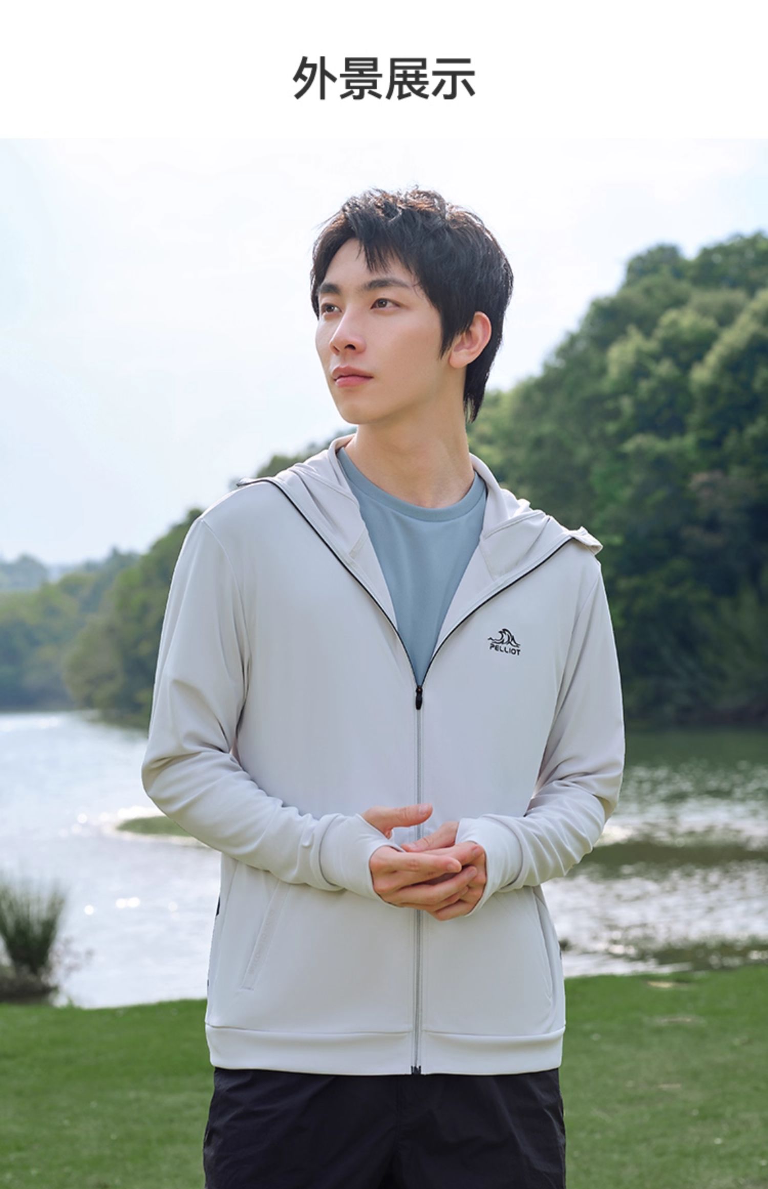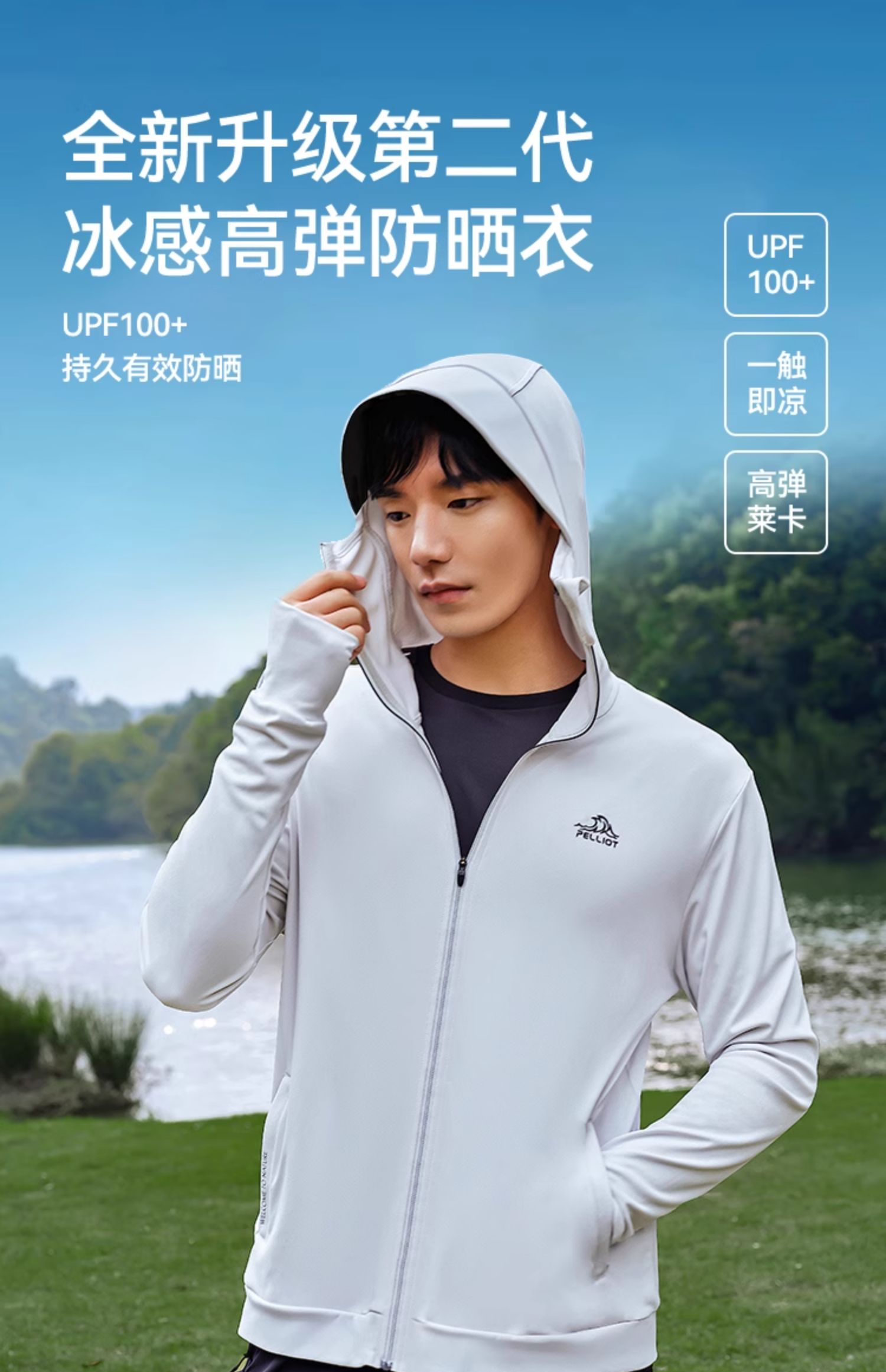 伯希和户外皮肤衣男士夏季轻薄凉感防晒服黑胶高弹透气钓鱼防晒衣