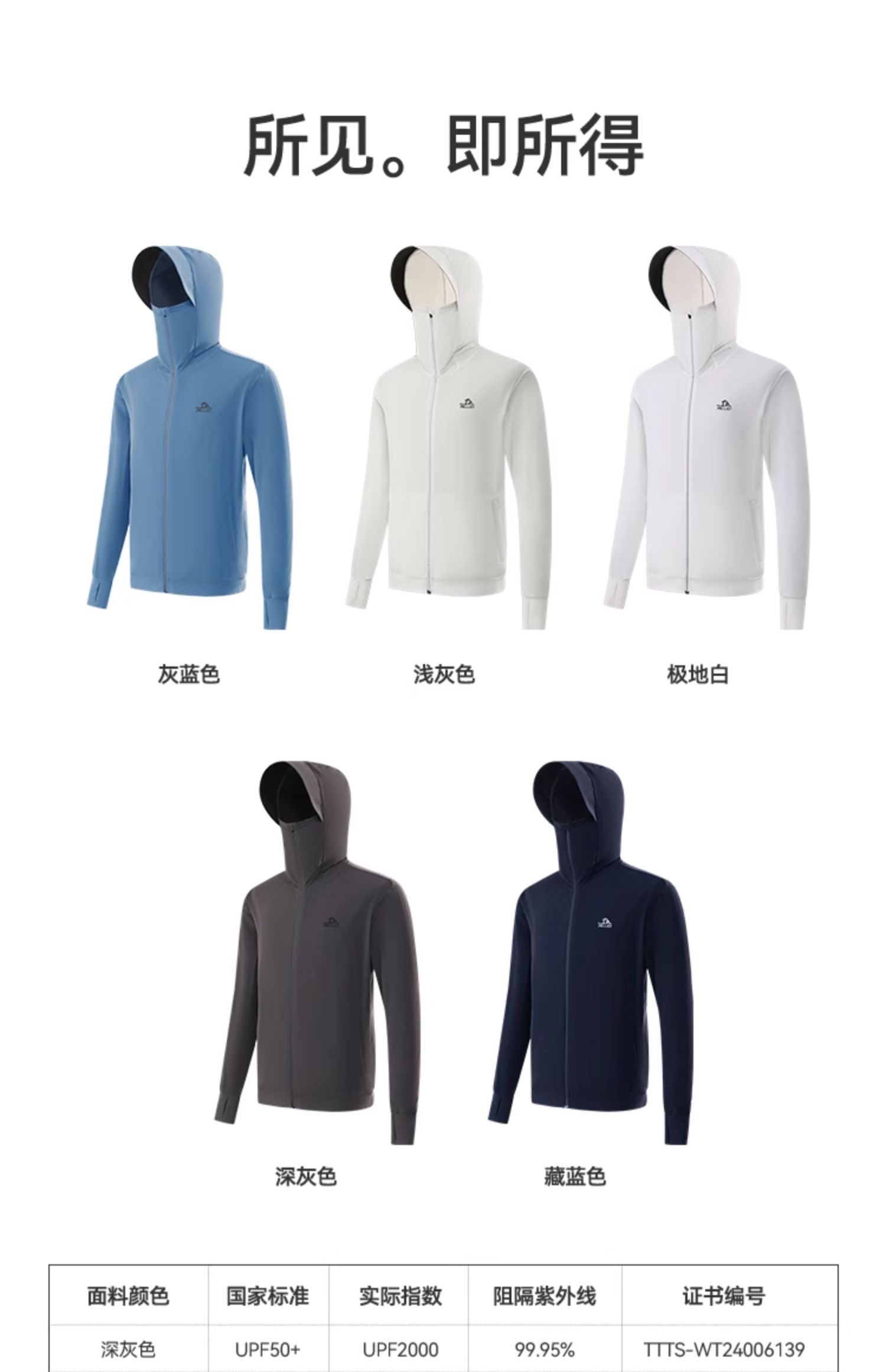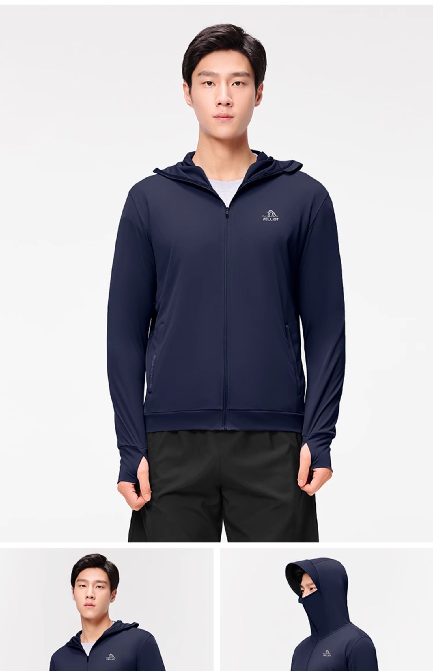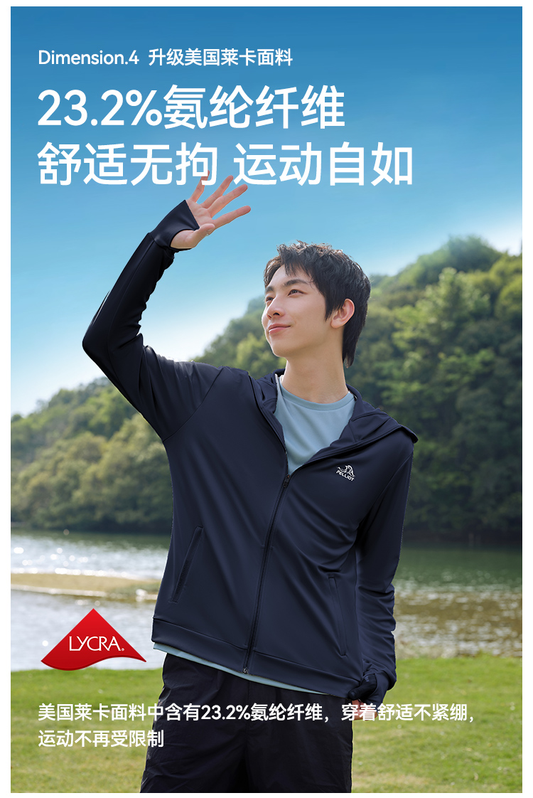 伯希和户外皮肤衣男士夏季轻薄凉感防晒服黑胶高弹透气钓鱼防晒衣