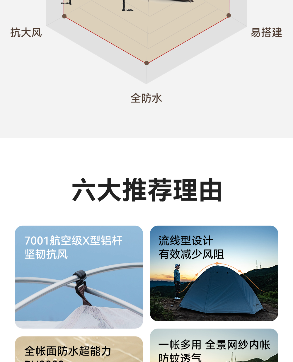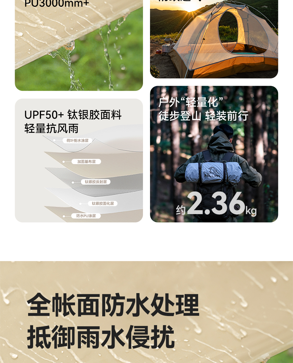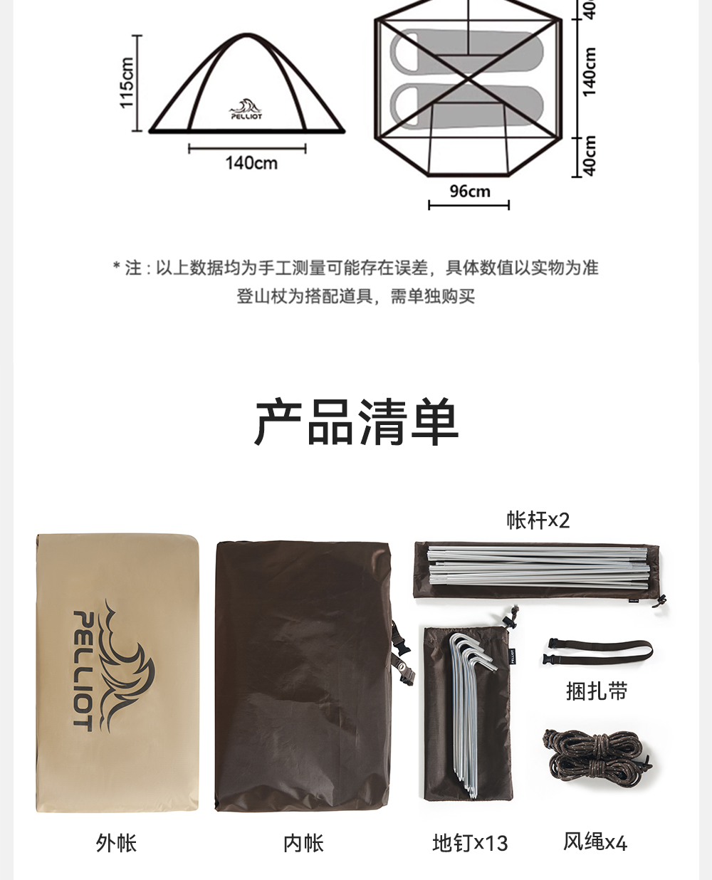 【季风】伯希和户外帐篷野营过夜专业徒步双人轻量化防风露营登山
