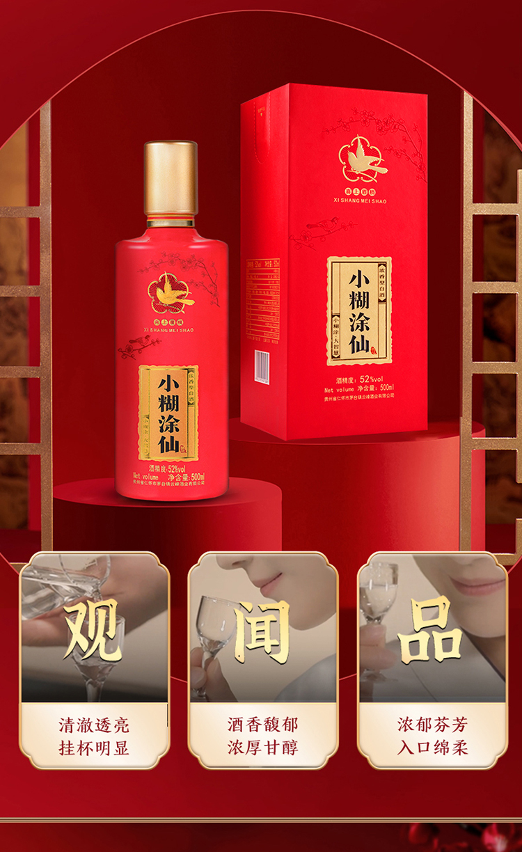 小糊涂仙 (喜上眉梢)白酒浓香型52度贵州高度白酒婚宴口粮酒送礼升学宴 52度 500mL 6瓶装