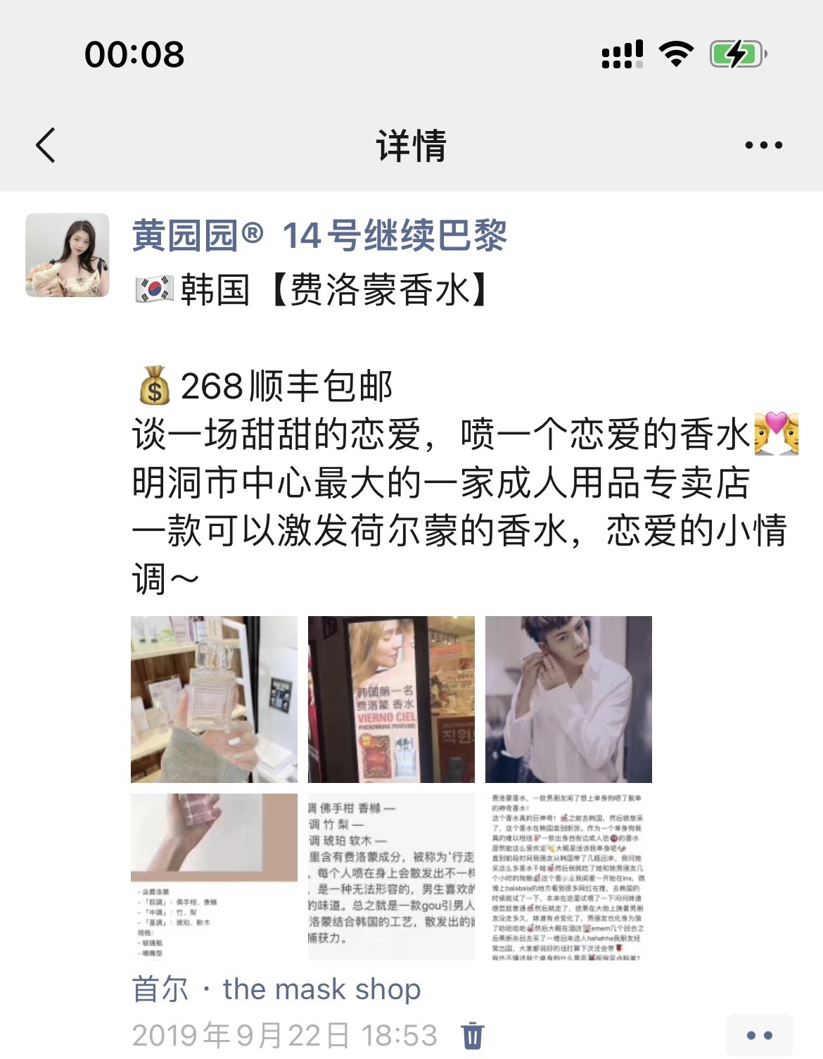 韩国费洛蒙香水,一款喷了就脱单的香水 在韩国很火了,提高自身魅力,吸引异性 每个人喷出来的后调都会不一样,融合属于你自己的味道。想用它来成功吸引到男神女神快来入手吧