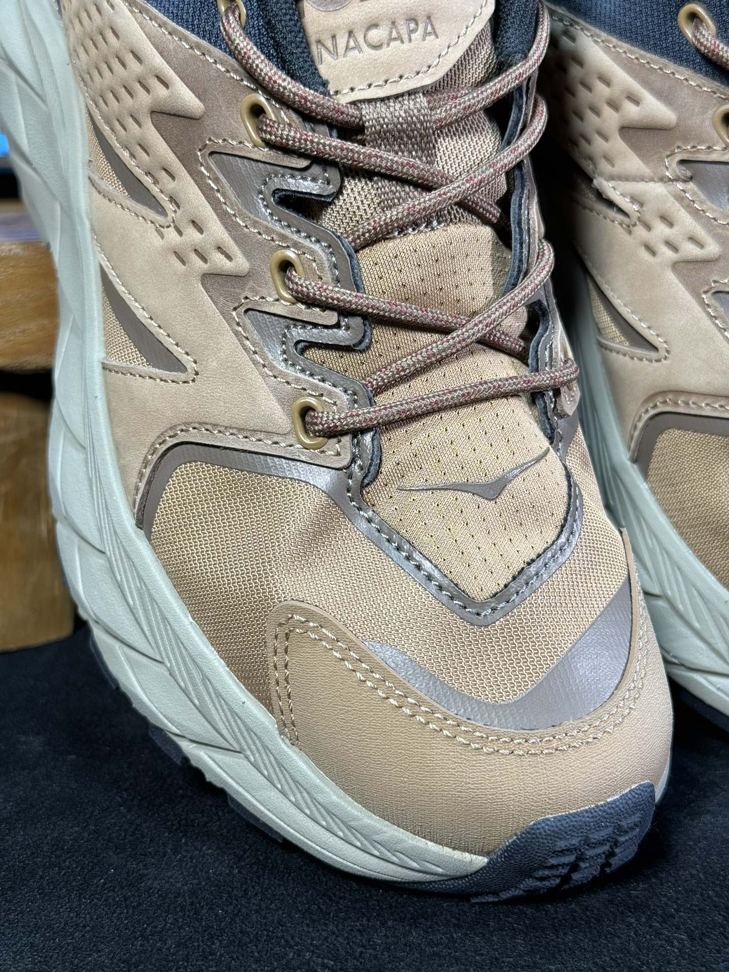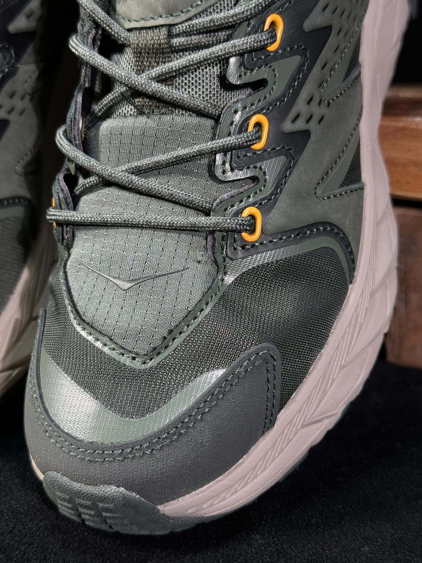 鞋侧面GORE-TEX全防水设计,防水透气透气!鞋底上层缓冲EVA可为足底带来柔软舒适的缓冲感,底层橡胶化泡棉提供持久的缓震和支撑, 5MM多向凸耳提供多种地形下的强劲抓地力,防滑且耐磨。