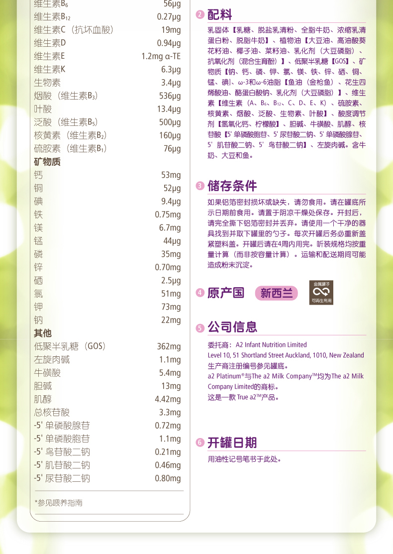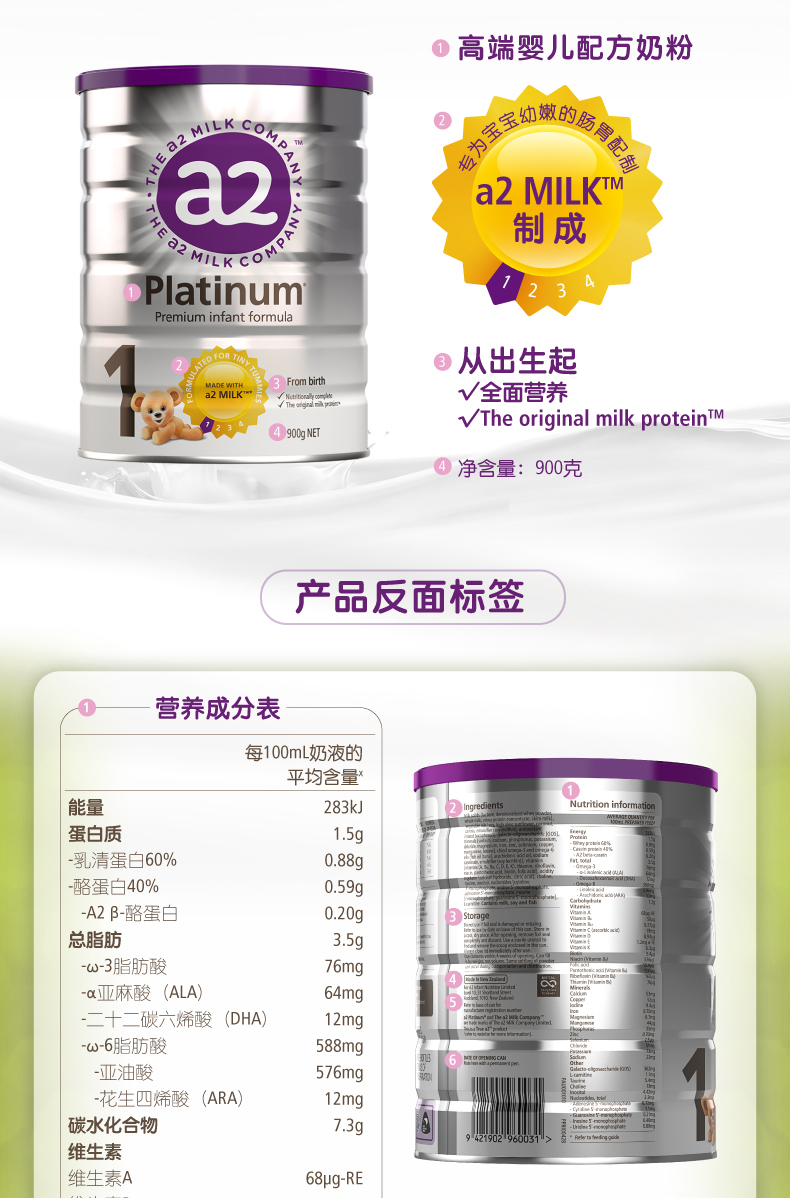 澳洲a2 Platinum白金1段奶粉900g一箱6桶