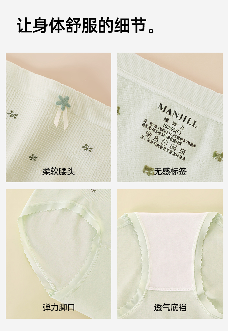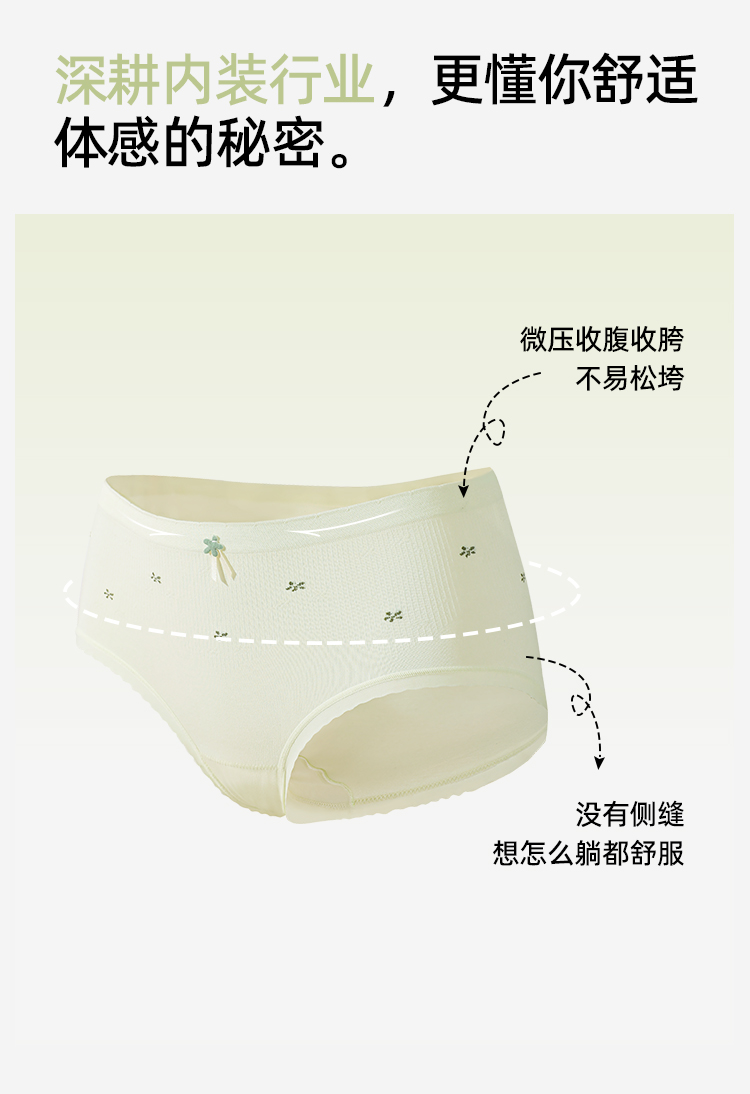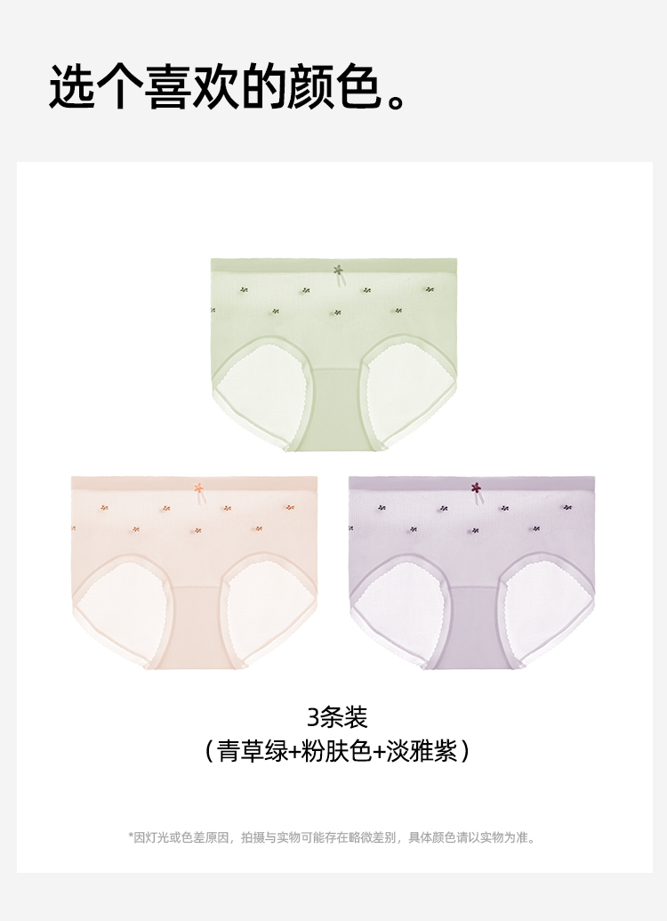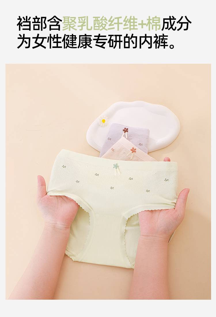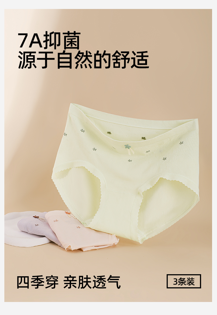【3条装】熳洁儿 无缝女士内裤7A抑菌聚乳酸底档甜美碎花内裤24762119
