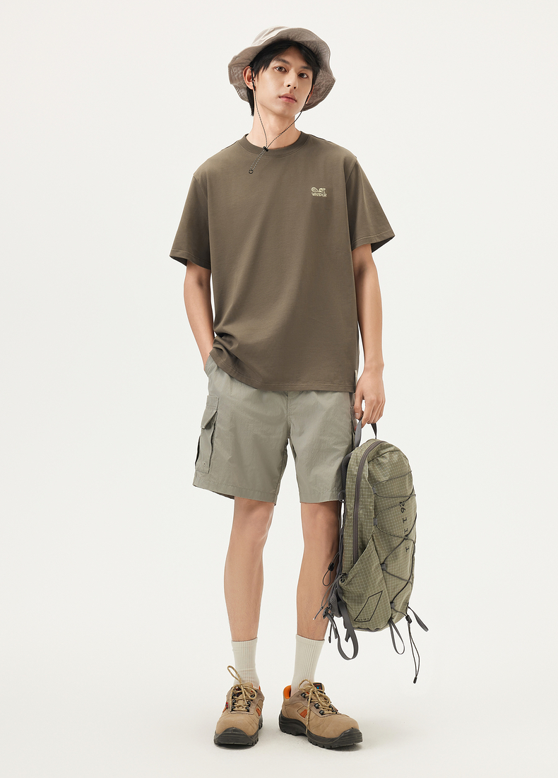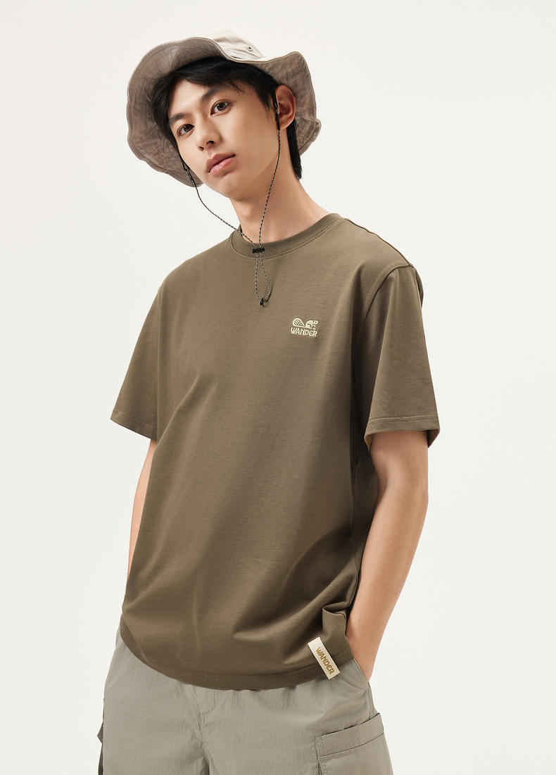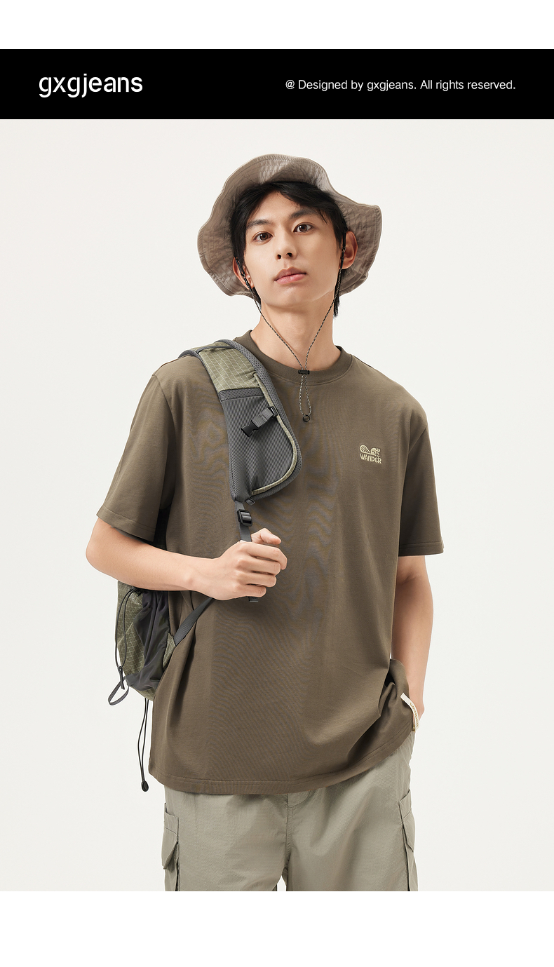 gxg.jeans男装 棕色字母绣花休闲宽松圆领短袖T恤男 25年夏热卖