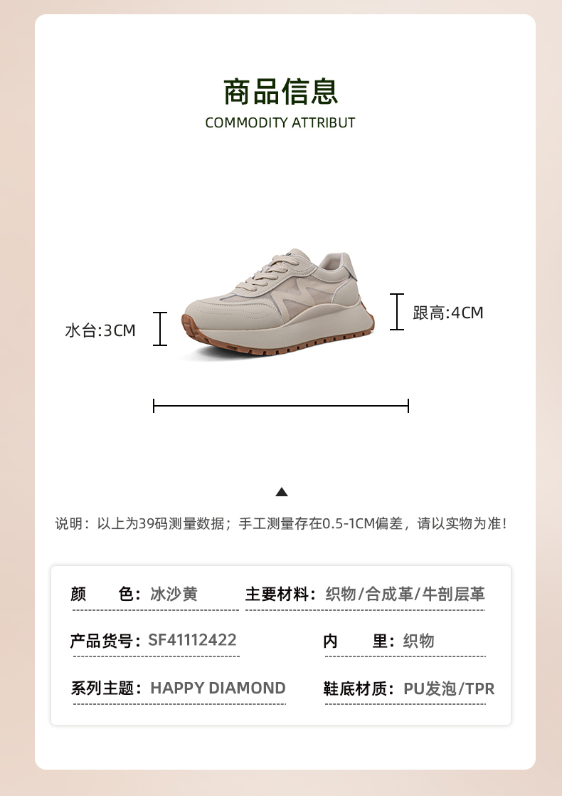 Safiya/索菲娅2024春季轻便休闲网面厚底复古风运动阿甘鞋 SF41112422