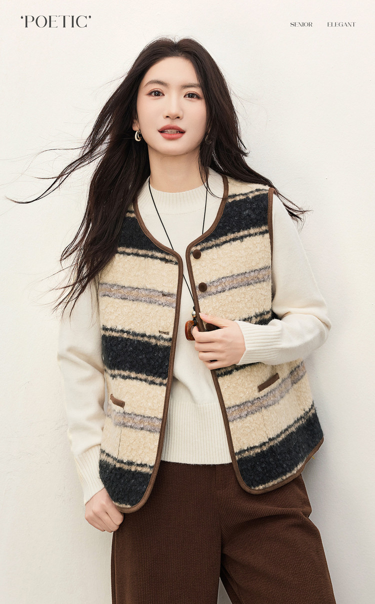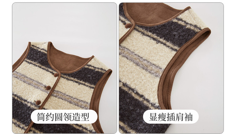【12/31新品】熙世界巨好看冬装一整套女复古条纹毛绒背心马甲针织毛衣两件套装