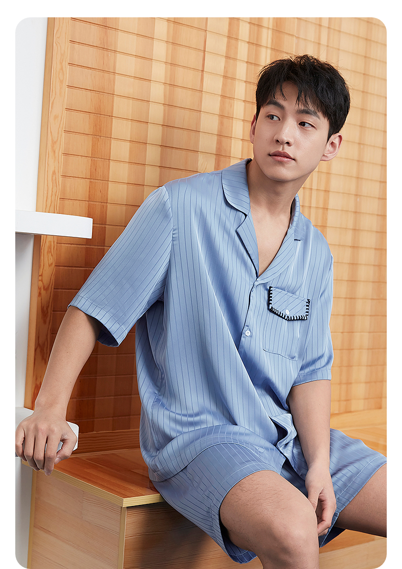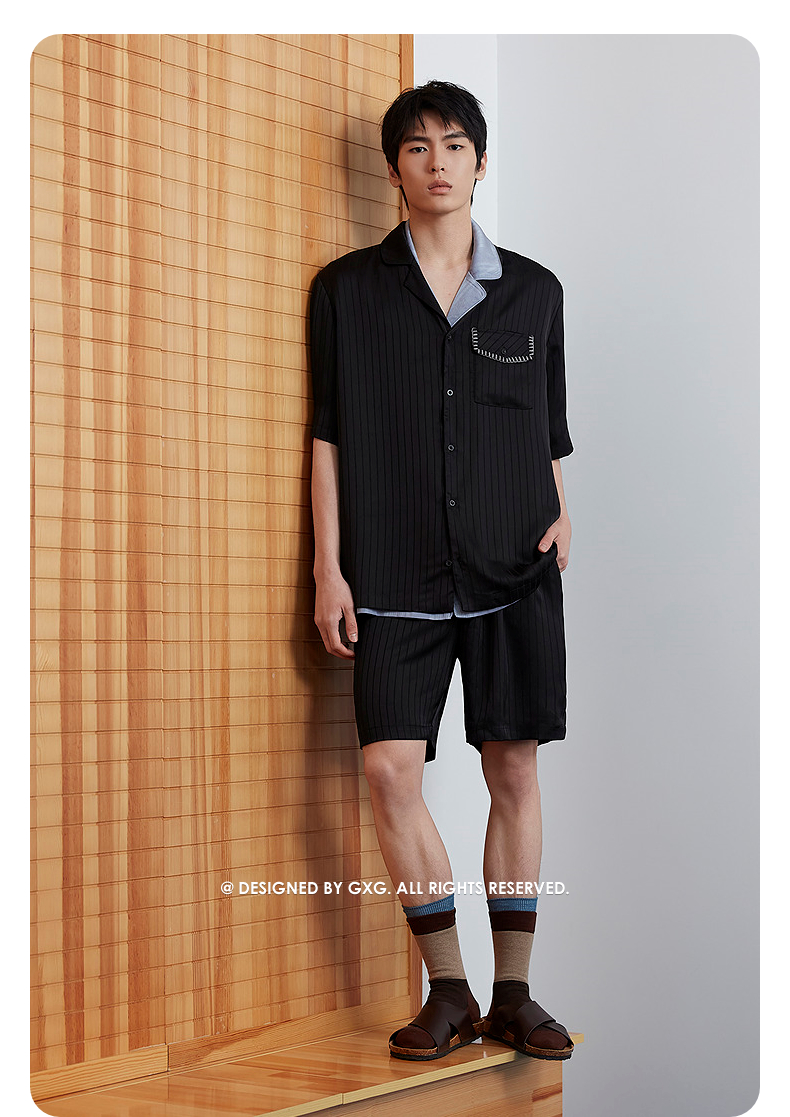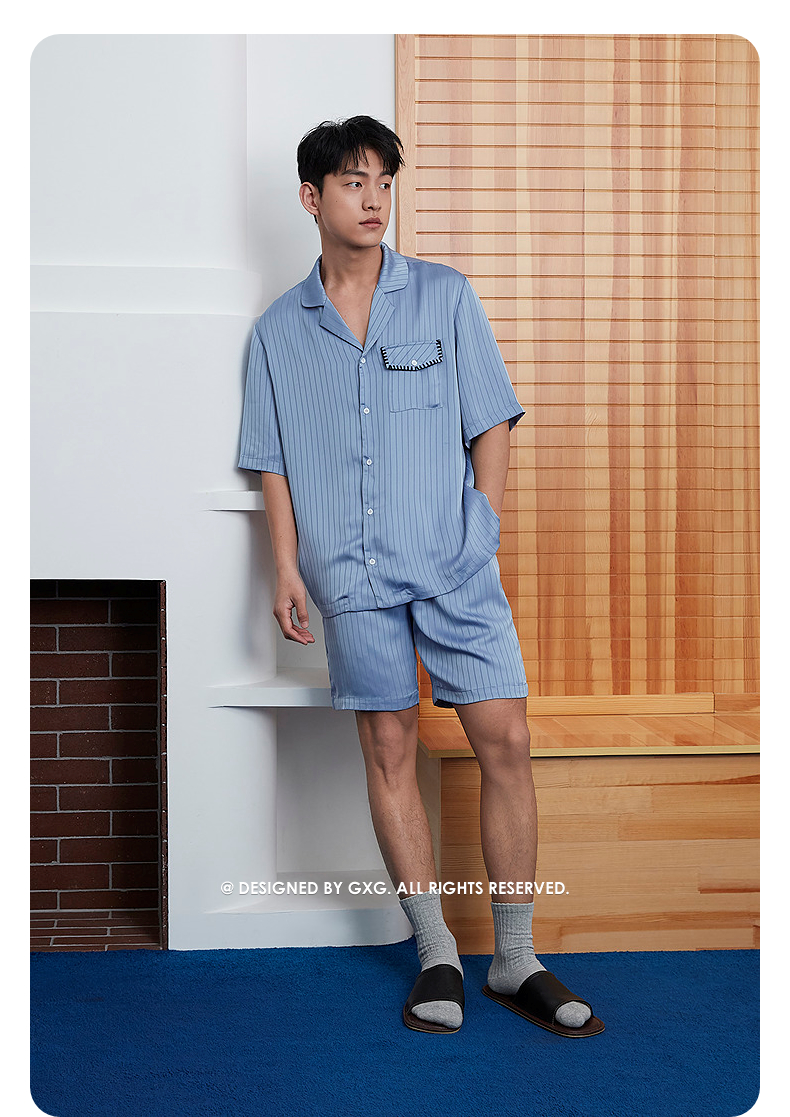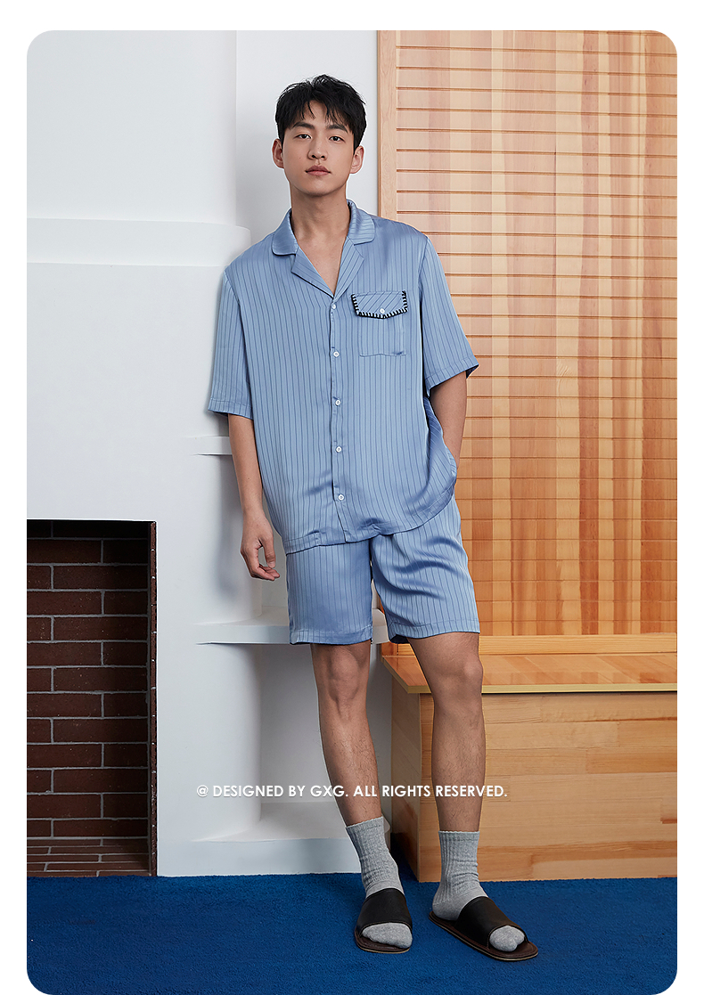 GXG男士家居服 冰丝感顺滑短袖睡衣套装男 25年春夏新品