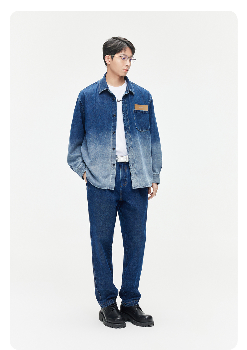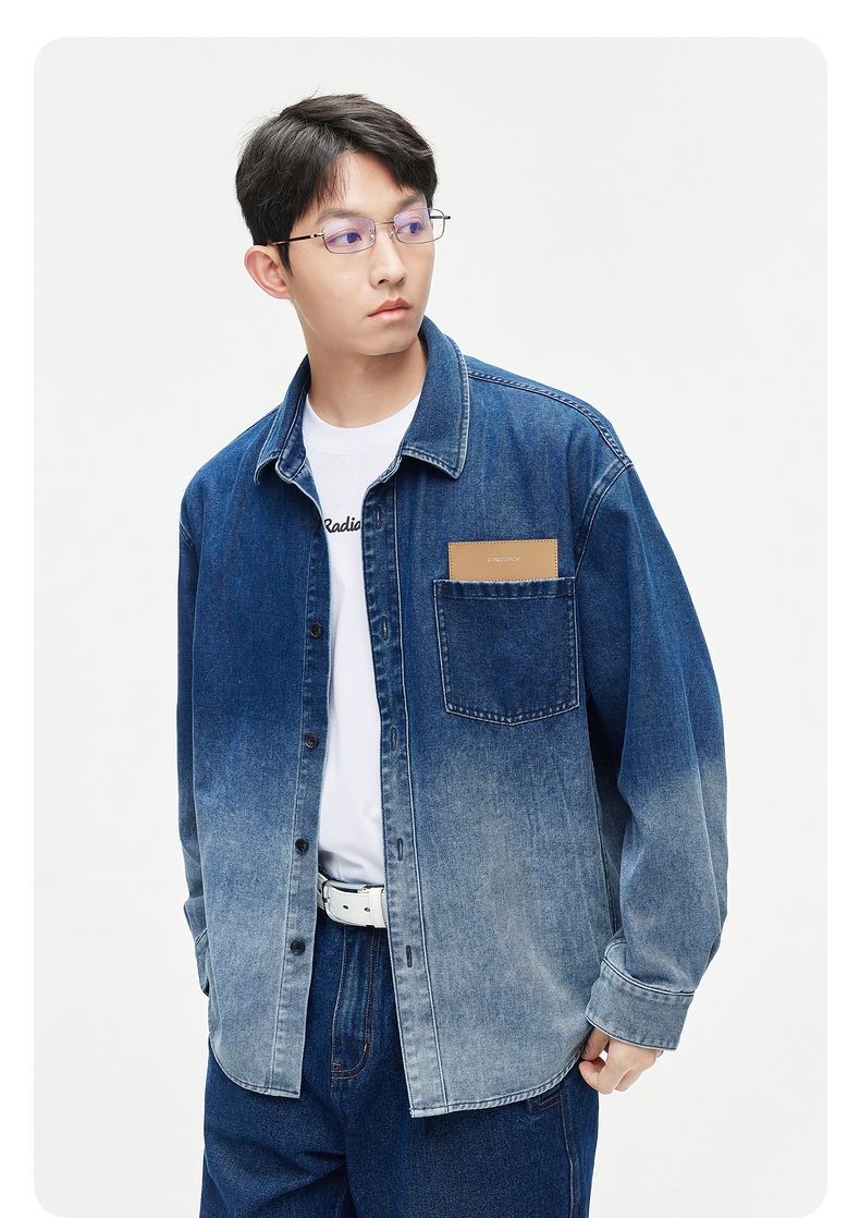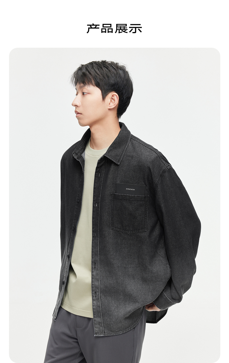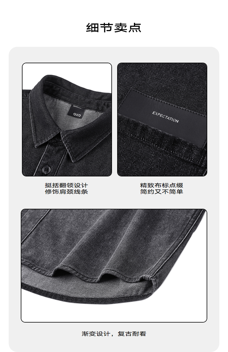GXG男装 2024年春季热卖水洗渐变牛仔衬衫外套男上衣
