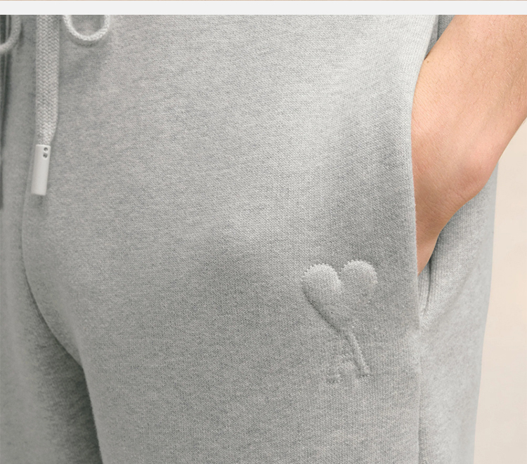 AMI 男士徽标刺绣拉绒混合棉质抓绒休闲运动裤 灰色 UTR237 749 0951