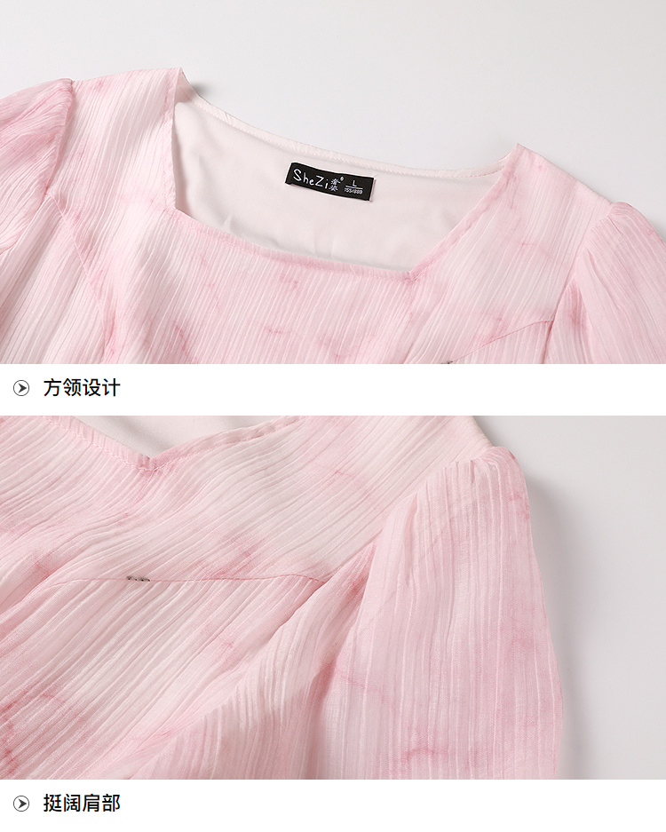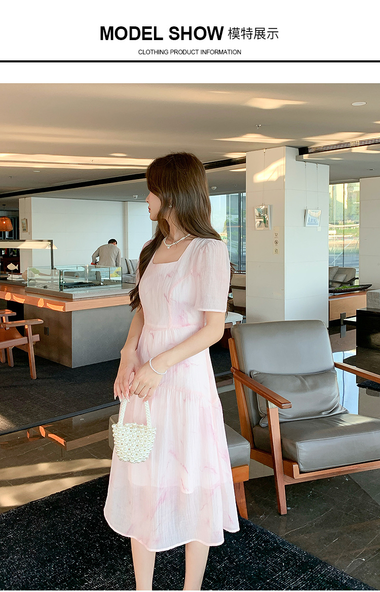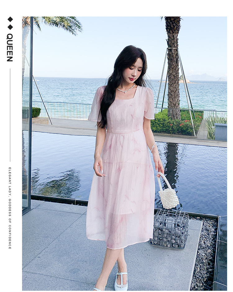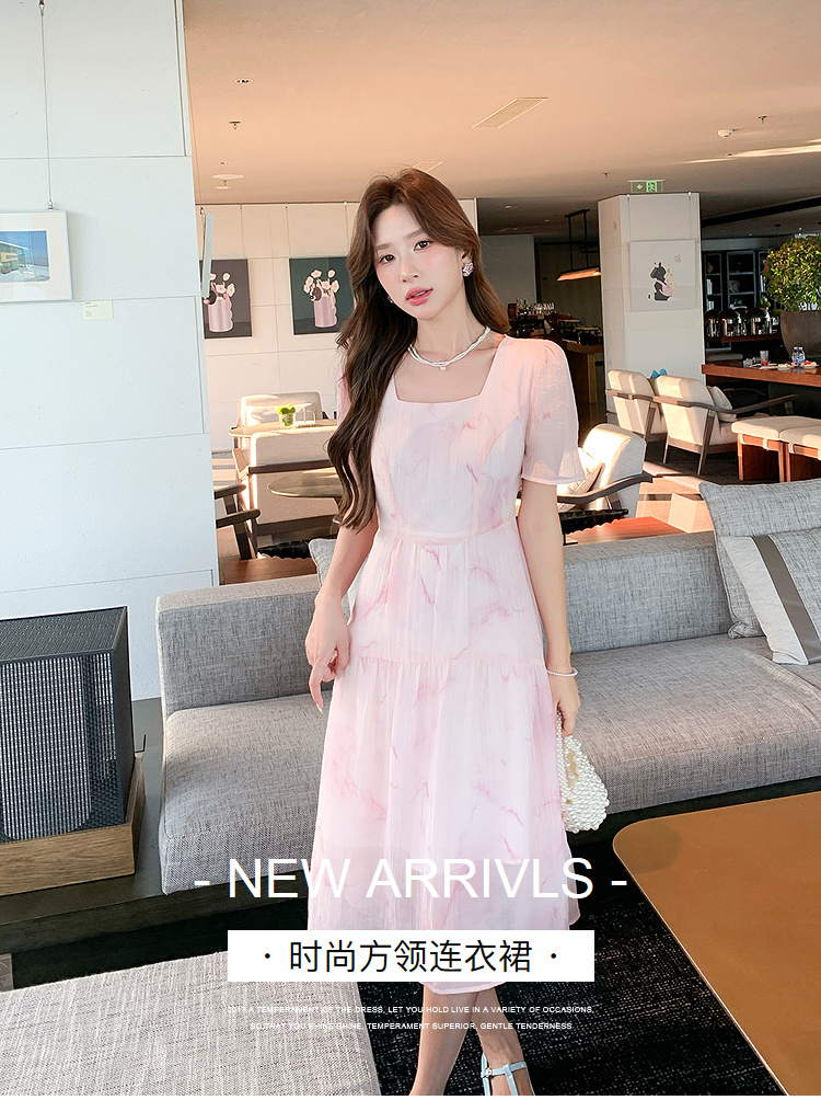 奢姿大码女装2025夏季减龄清冷遮肉印花连衣裙胖妹妹方领时尚裙子9952858209
