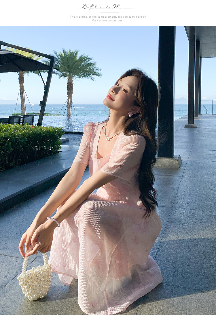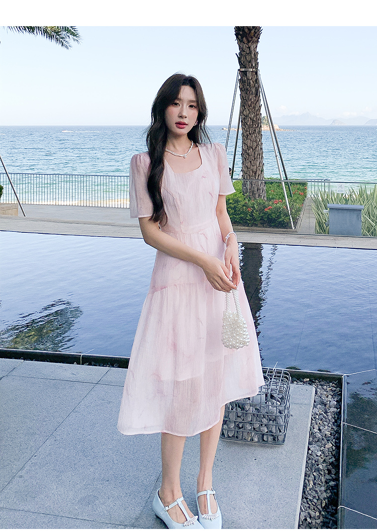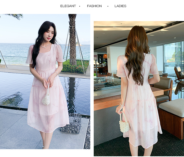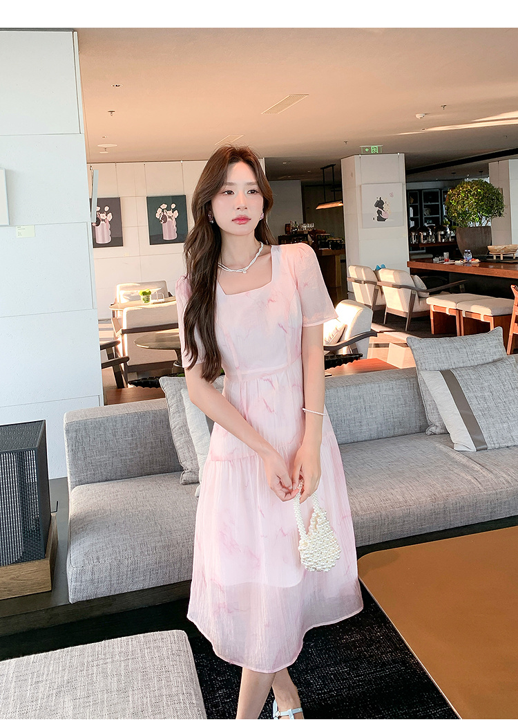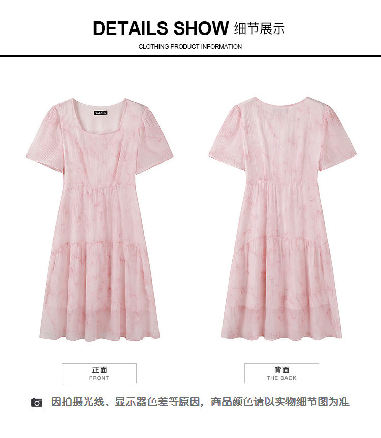 奢姿大码女装2025夏季减龄清冷遮肉印花连衣裙胖妹妹方领时尚裙子9952858209