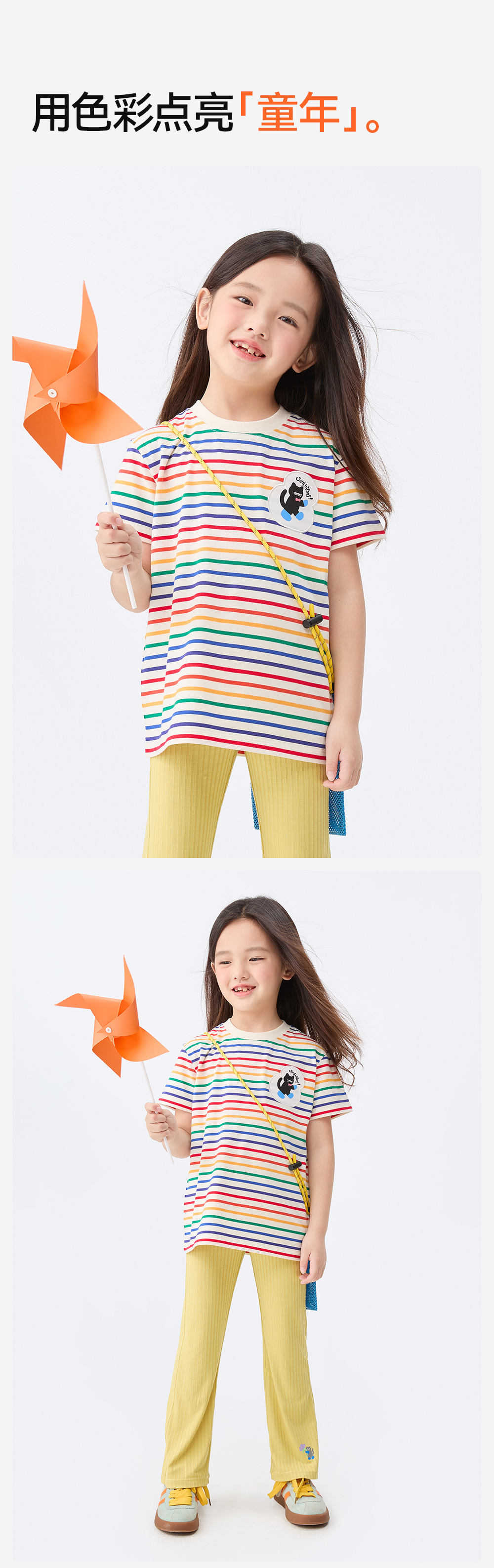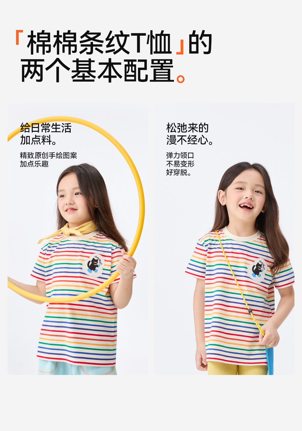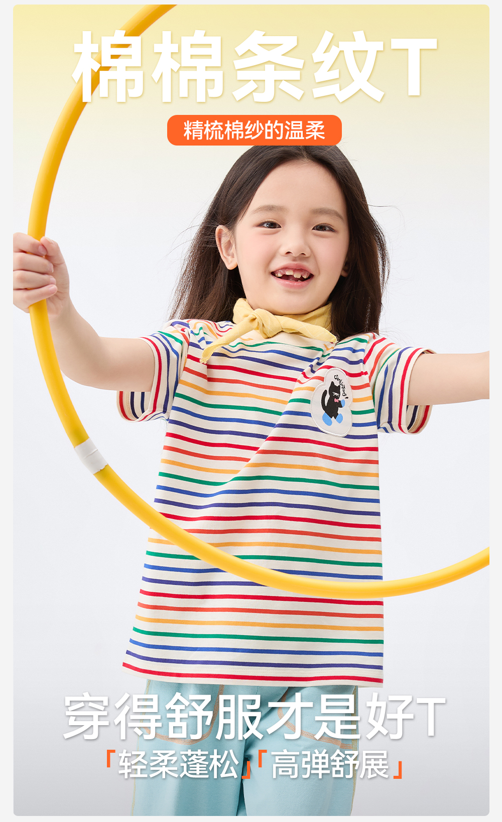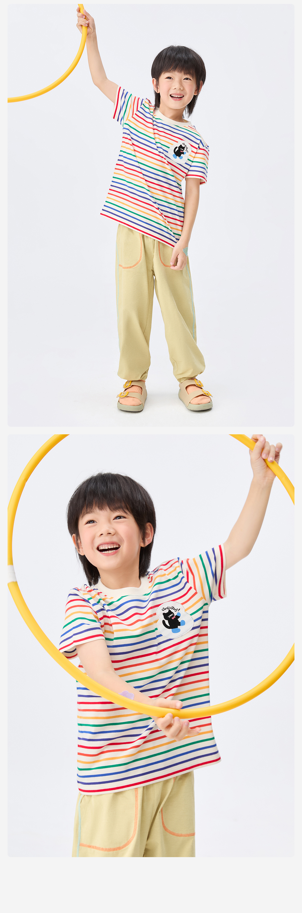 【彩虹条纹T恤】森林棠26新款儿童棉棉条纹弹力圆领上衣20342520