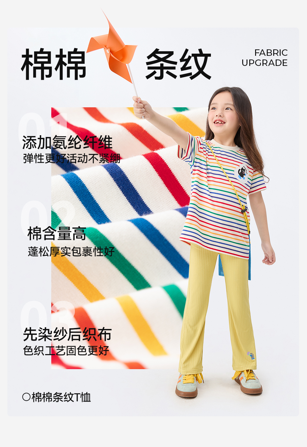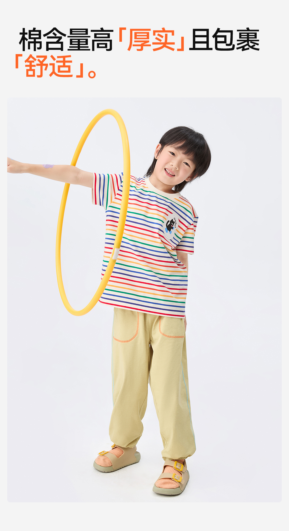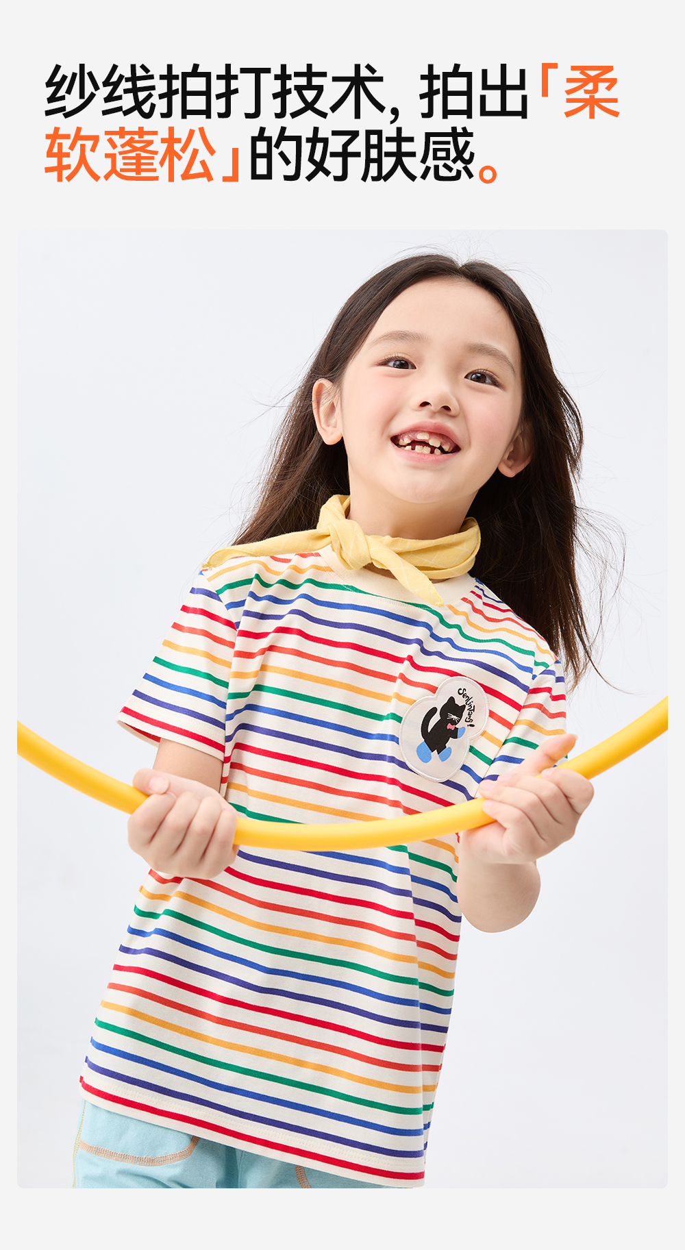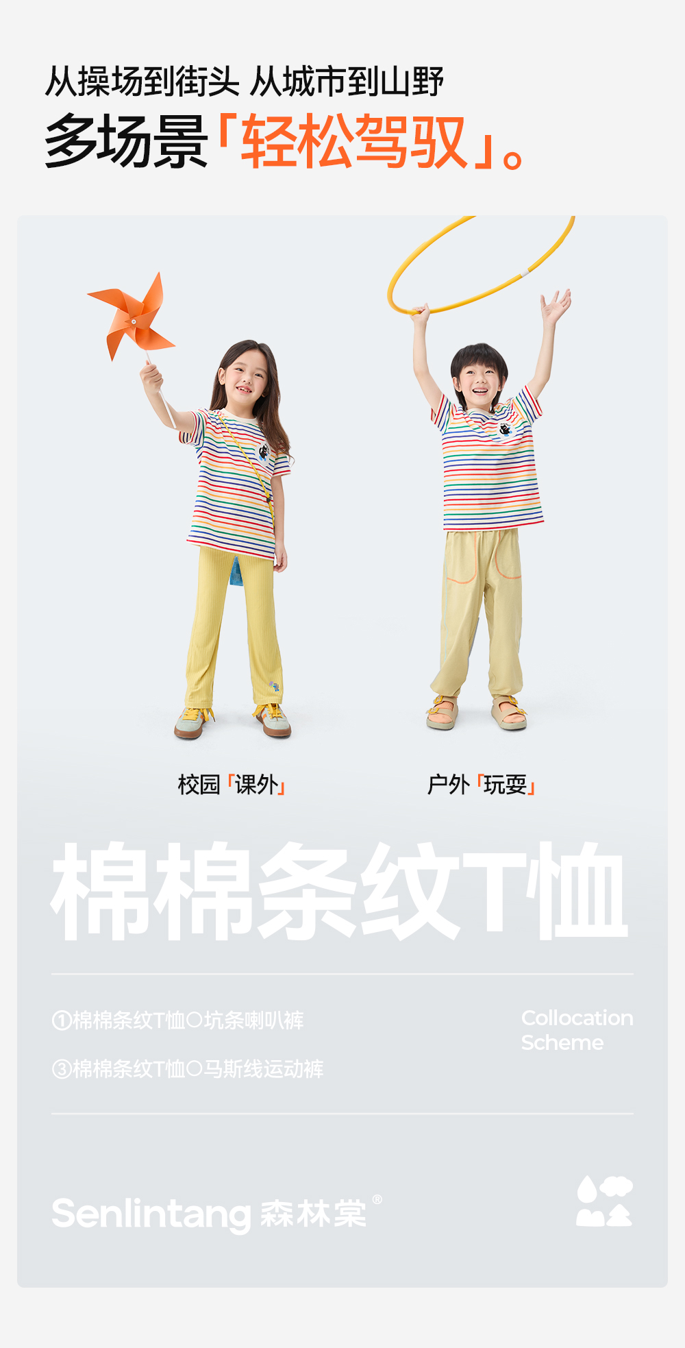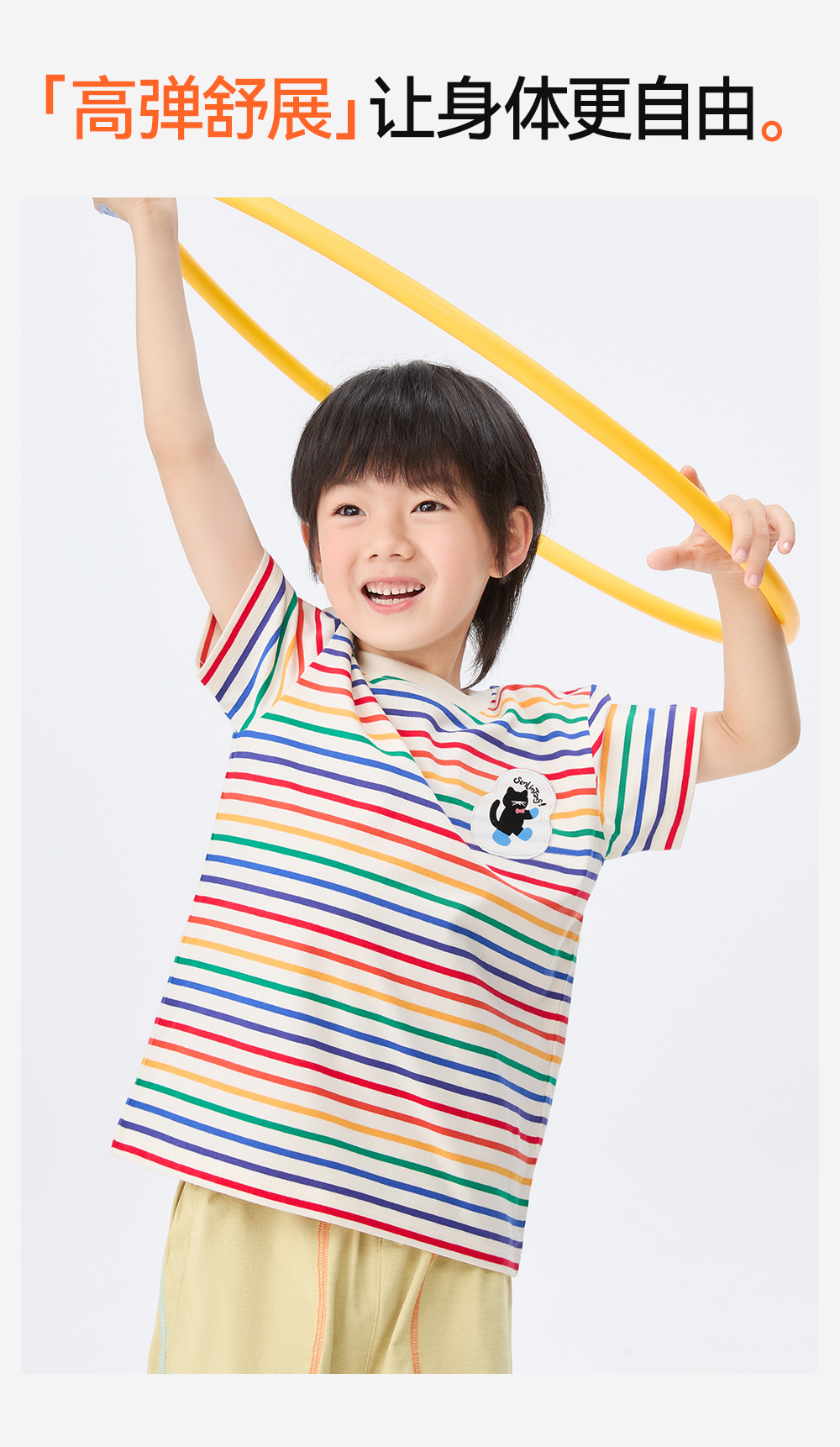 【彩虹条纹T恤】森林棠26新款儿童棉棉条纹弹力圆领上衣20342520