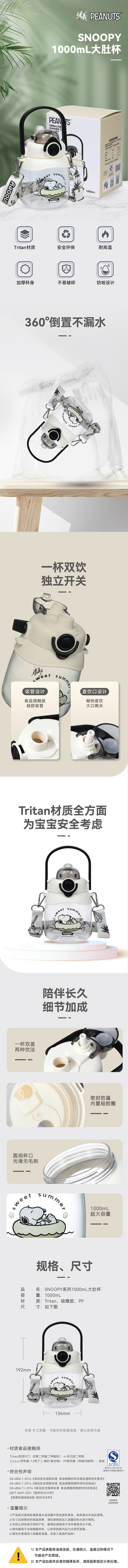 曙曦SNOOPY系列大肚杯1000mlFU-23-5076SN